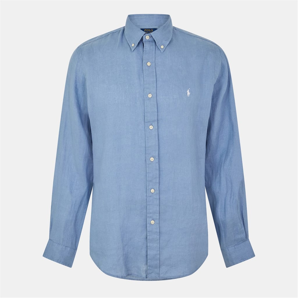 - Get ready to embrace effortless style with Polo Ralph Lauren's Linen Long Sleeve Shirt. Meticulously made from linen, this shirt boasts a lightweight, breathable feel with a tailored fit that ensures both comfort and enhances your silhouette. The button-down collar and buttoned placket add a classic touch, while the long sleeves with buttoned barrel cuffs offer adaptability and versatility. The split back yoke with a box pleat provide a comfortable fit and allows for a greater range of motion.