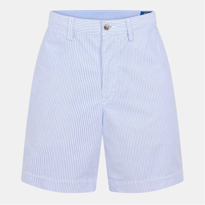 These Polo Ralph Lauren chino shorts feature a classic vertical stripe pattern, offering a stylish yet relaxed look. The shorts are designed with a button and zip fly closure for a secure fit. A subtle logo embellishment adds a touch of brand identity, making these shorts a versatile addition to any wardrobe. -