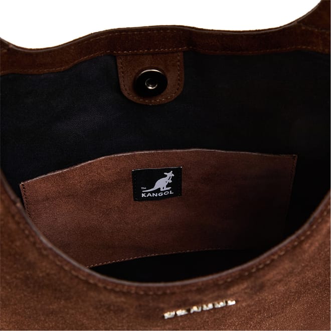 Discover the Kangol hobo bag, a stylish addition to your collection. This bag features a convenient snap button closure and a comfortable shoulder handle, making it perfect for daily use. Adorned with stud embellishments and a subtle logo, it combines functionality with a touch of elegance. -