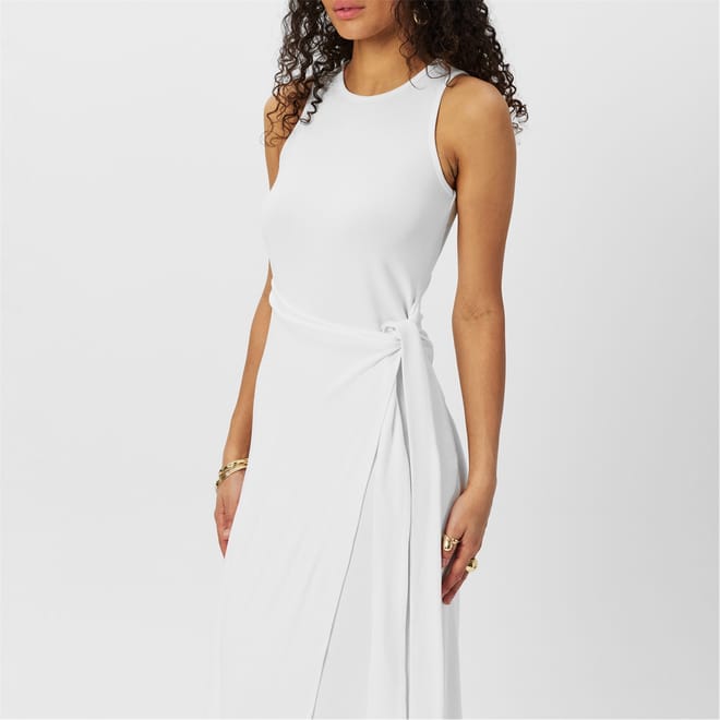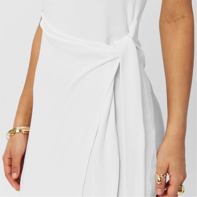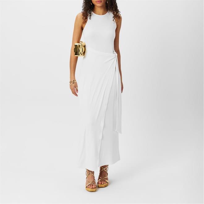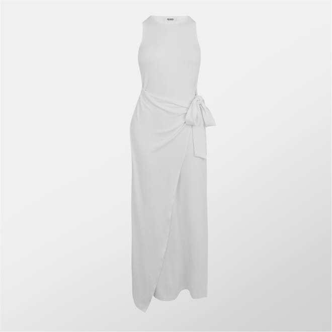 This 4th & Reckless maxi dress features a wrap style with a crew neckline and a tie waist closure. Designed in a solid pattern, it offers a slim fit, making it a versatile addition to any wardrobe. -