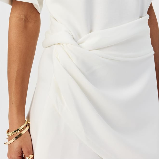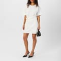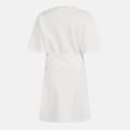 This 4th & Reckless mini dress combines a t-shirt style with a crew neck and short sleeves. The solid pattern and regular fit offer a classic look, while ruched and cut-out embellishments add a modern twist. The straight hemline completes this versatile piece, perfect for various occasions. -