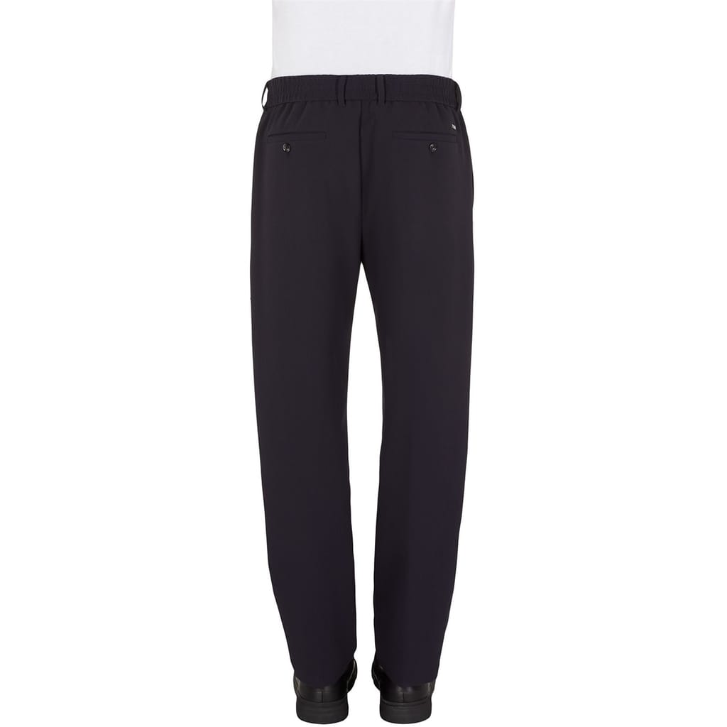 Emporio Armani trousers offer a sophisticated touch with their regular fit and practical belt loops. These pants feature pockets, adding functionality to their sleek design. Ideal for those seeking a blend of style and practicality. -