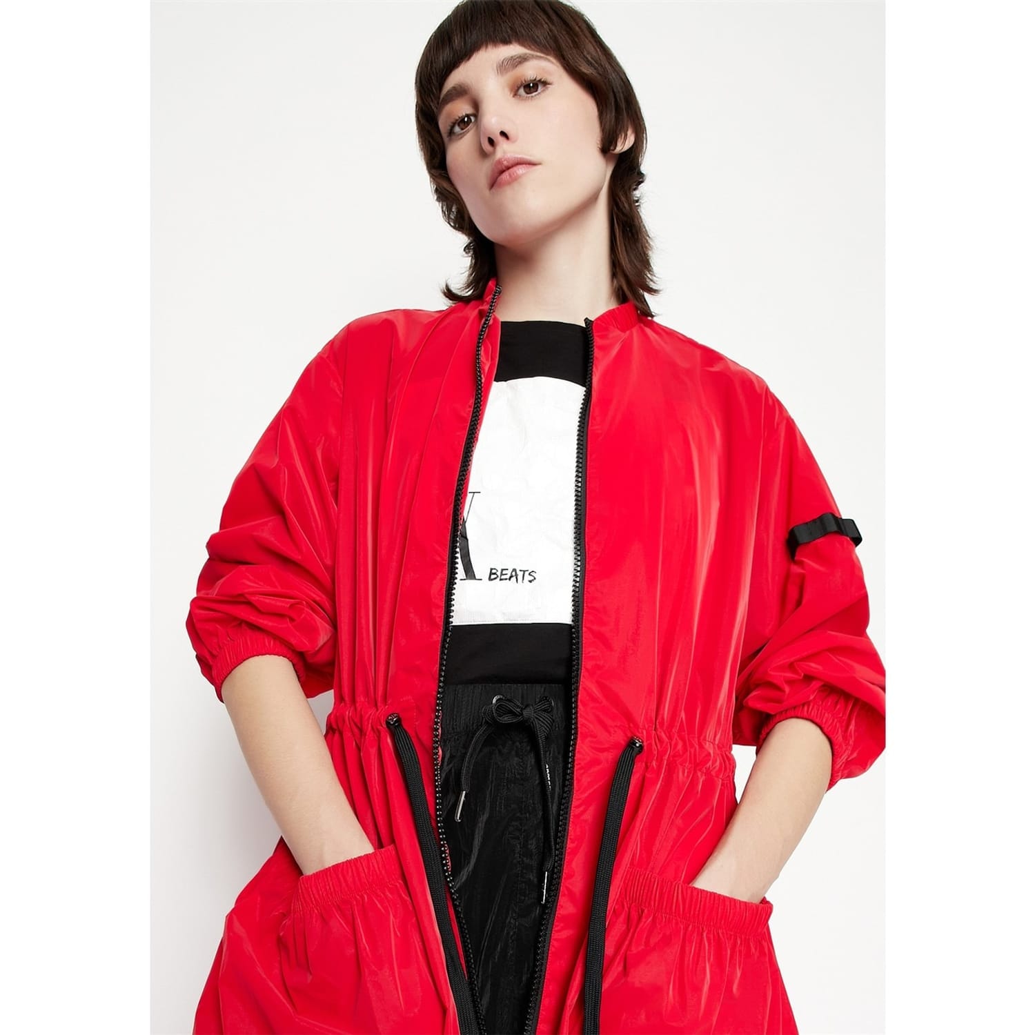 The Armani Exchange windbreaker jacket offers a relaxed fit with a solid pattern. Featuring an overcoat style, it boasts a straight hem and elasticated cuffs. Designed with a zipper closure, this jacket also includes practical pockets, making it a versatile addition to your wardrobe. -