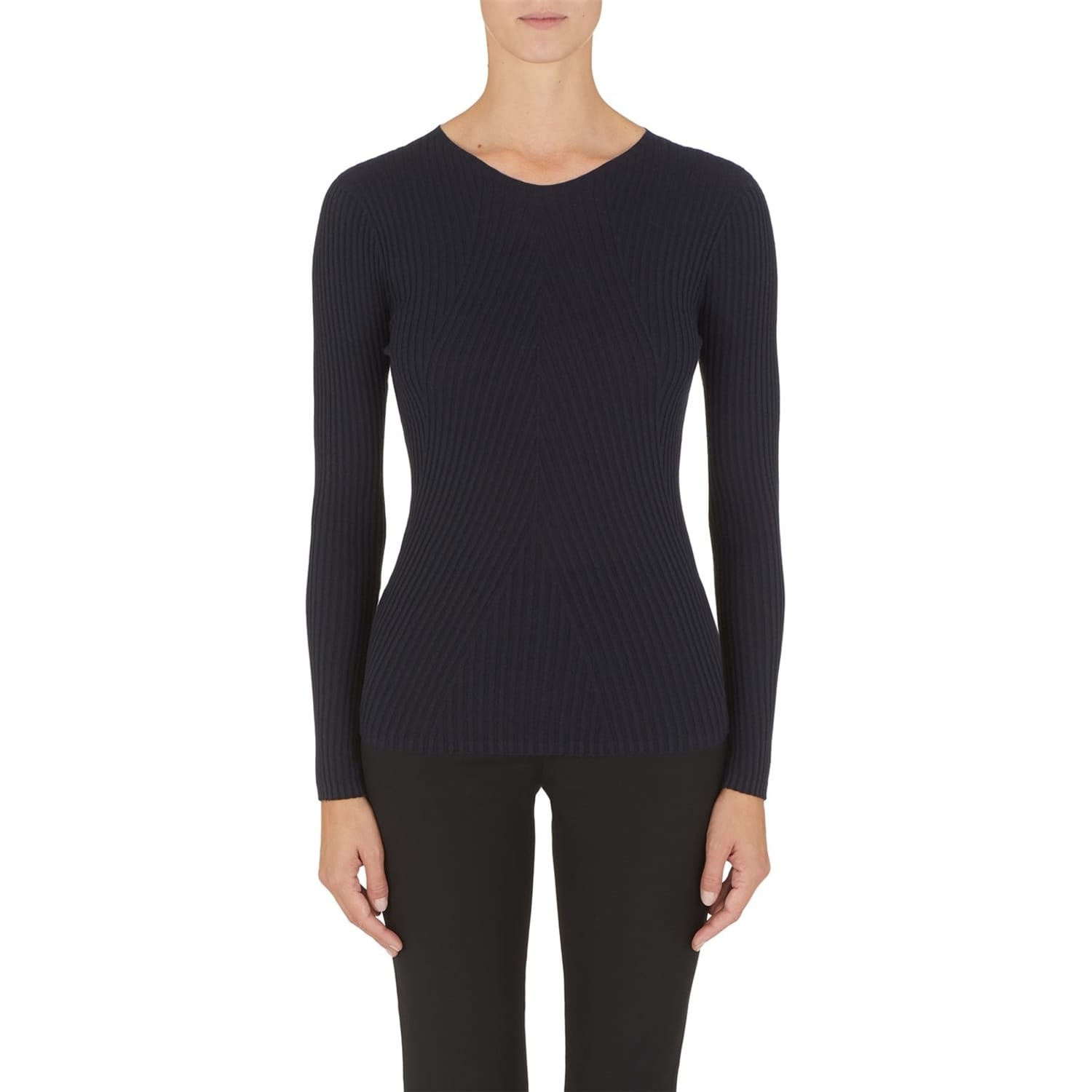 Discover the Emporio Armani sweater, a sophisticated choice for your wardrobe. This ribbed top features a crew neck and long sleeves, offering a slim fit for a flattering silhouette. The sweater's ribbed pattern adds texture and style, while its quality craftsmanship ensures comfort and elegance in every wear. -