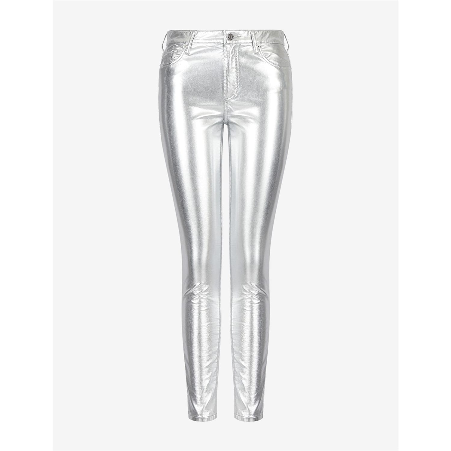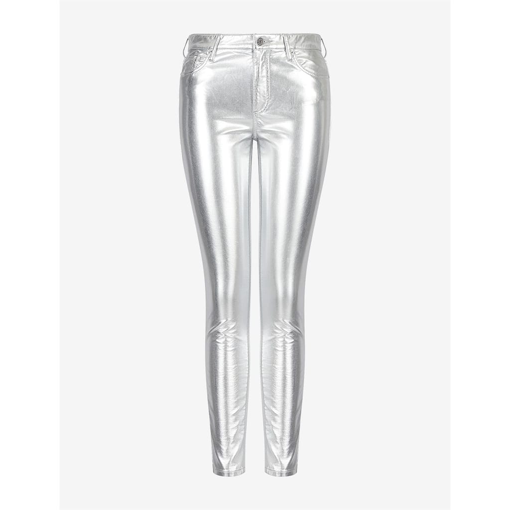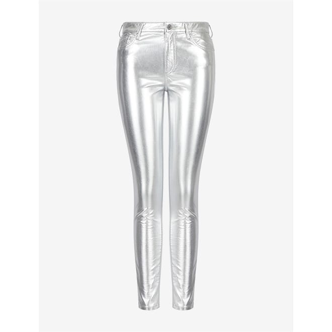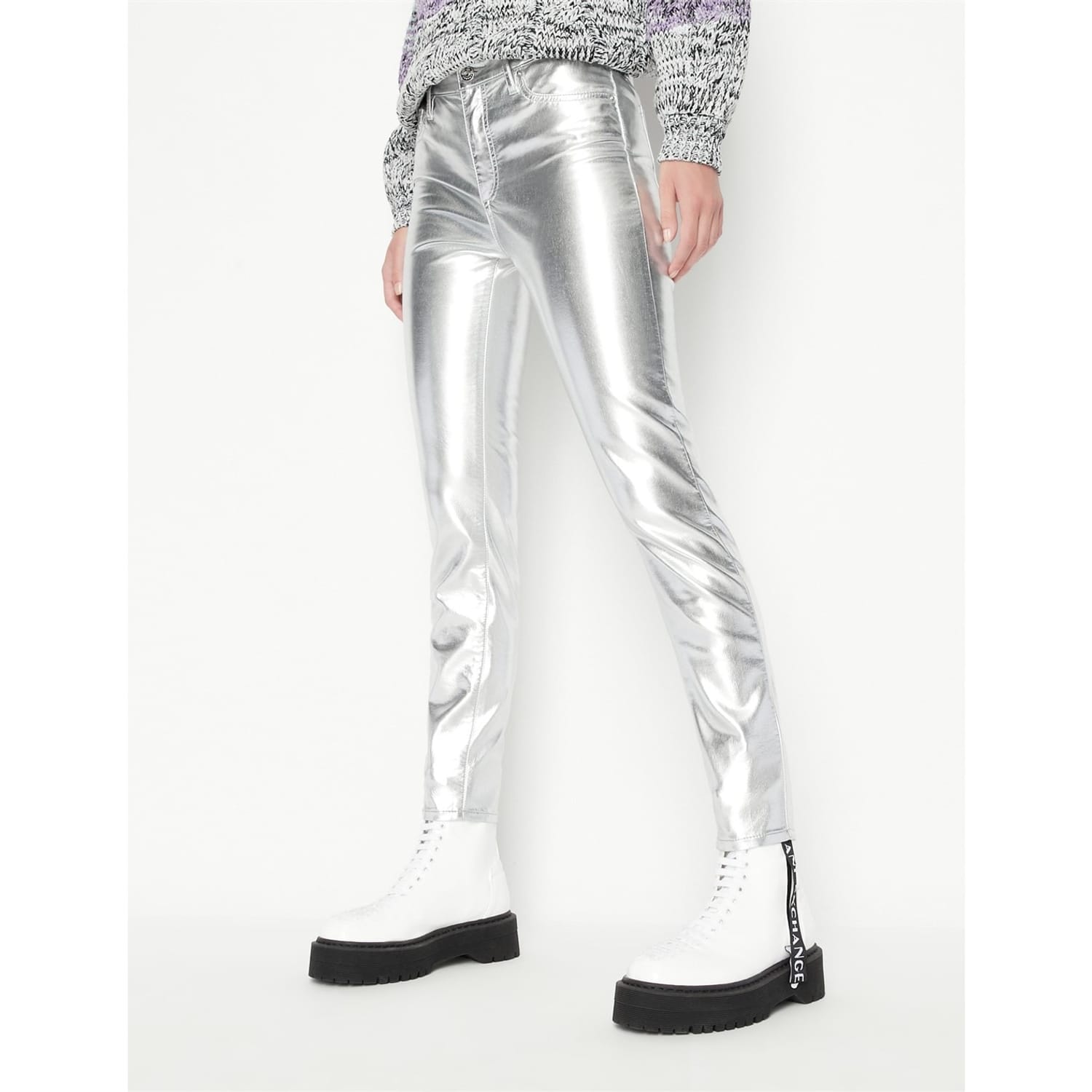Discover the Armani Exchange metallic pants, featuring a stylish zip fly and button closure. These pants are designed with practical pockets, offering both functionality and a modern aesthetic. Perfect for those seeking a blend of fashion and utility. -
