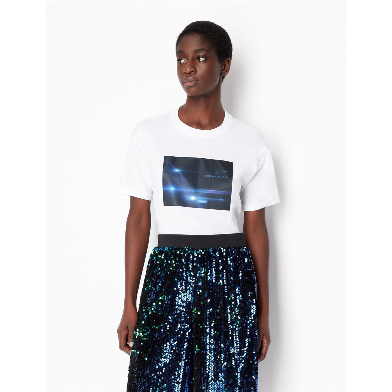 This Armani Exchange t-shirt features a graphic print, offering a stylish choice for casual wear. With its regular fit and crew neck, it ensures comfort and a classic look. The short sleeves and ribbed collar add to its relaxed appeal, making it an ideal addition to any wardrobe. -