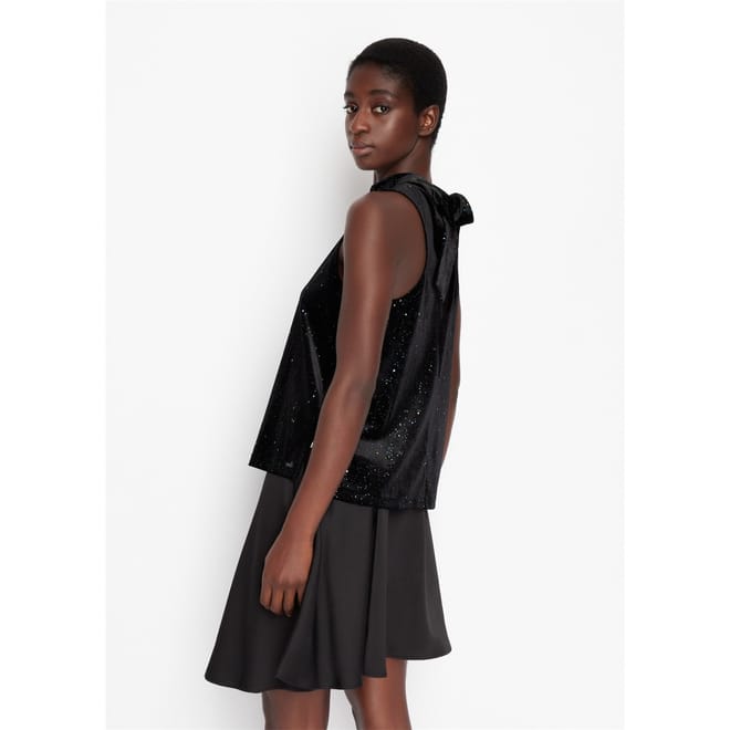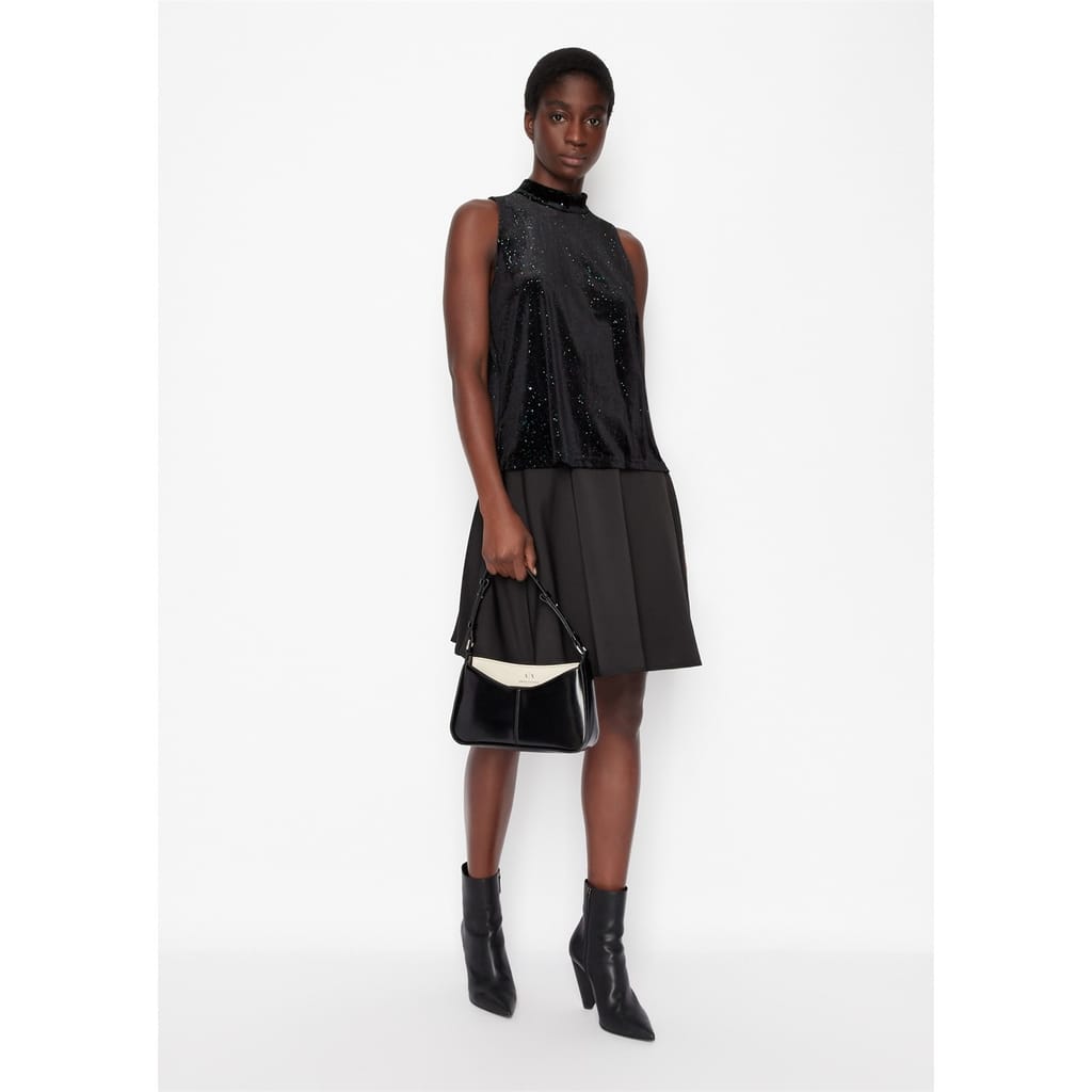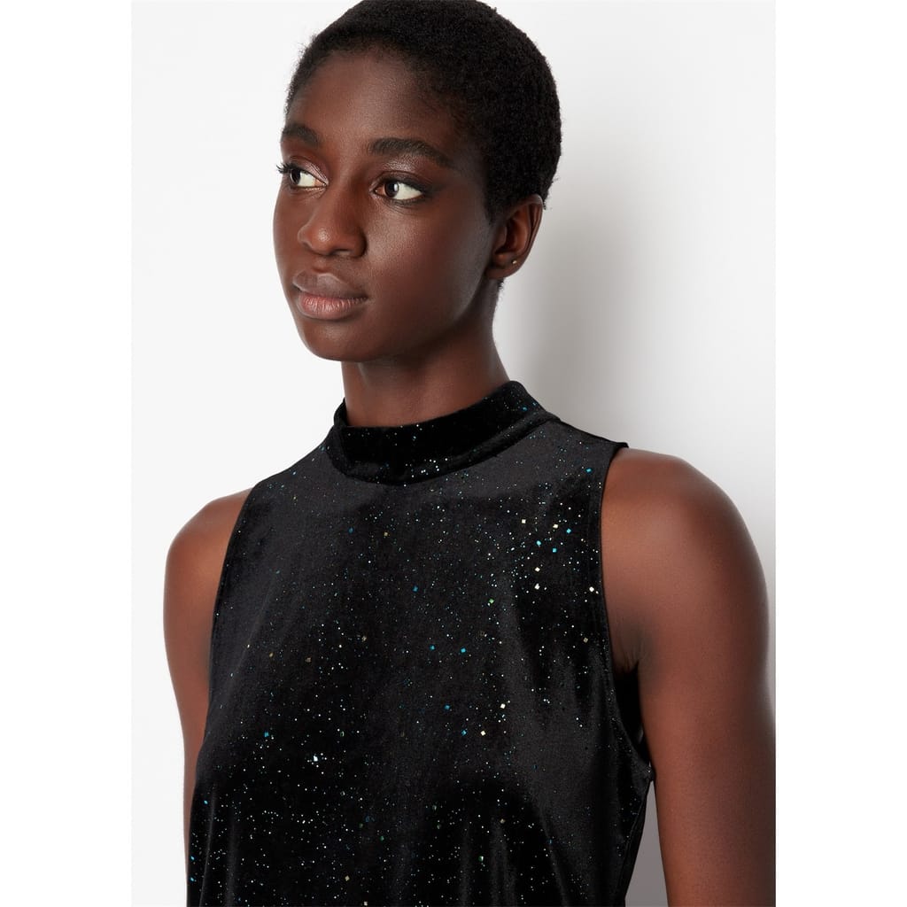 This Armani Exchange dress from the casual collection is a stylish addition to your wardrobe. Featuring a high neck and knee length, it offers a regular fit with a solid pattern. The dress is adorned with glitter embellishments, adding a touch of sparkle to its sleek design. -
