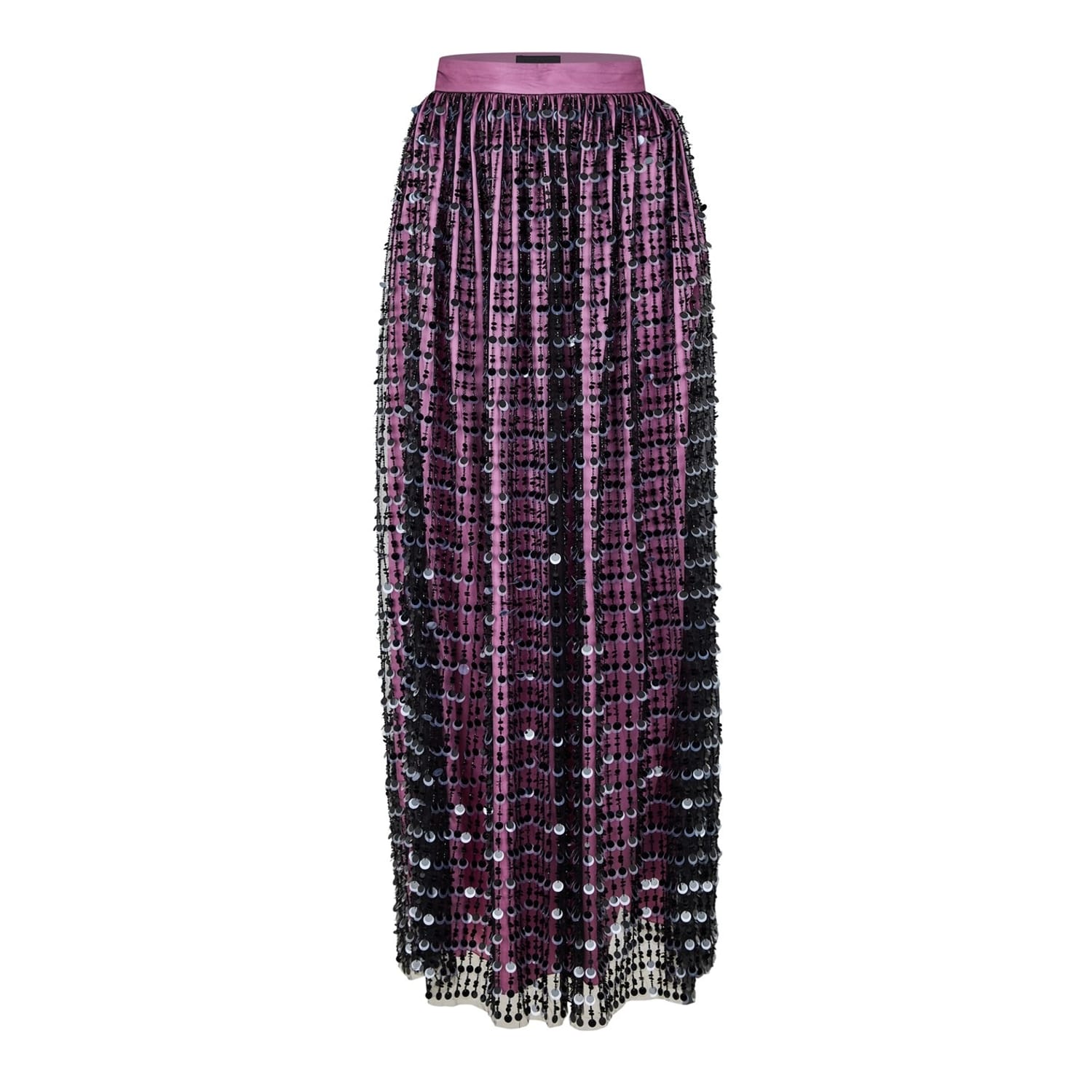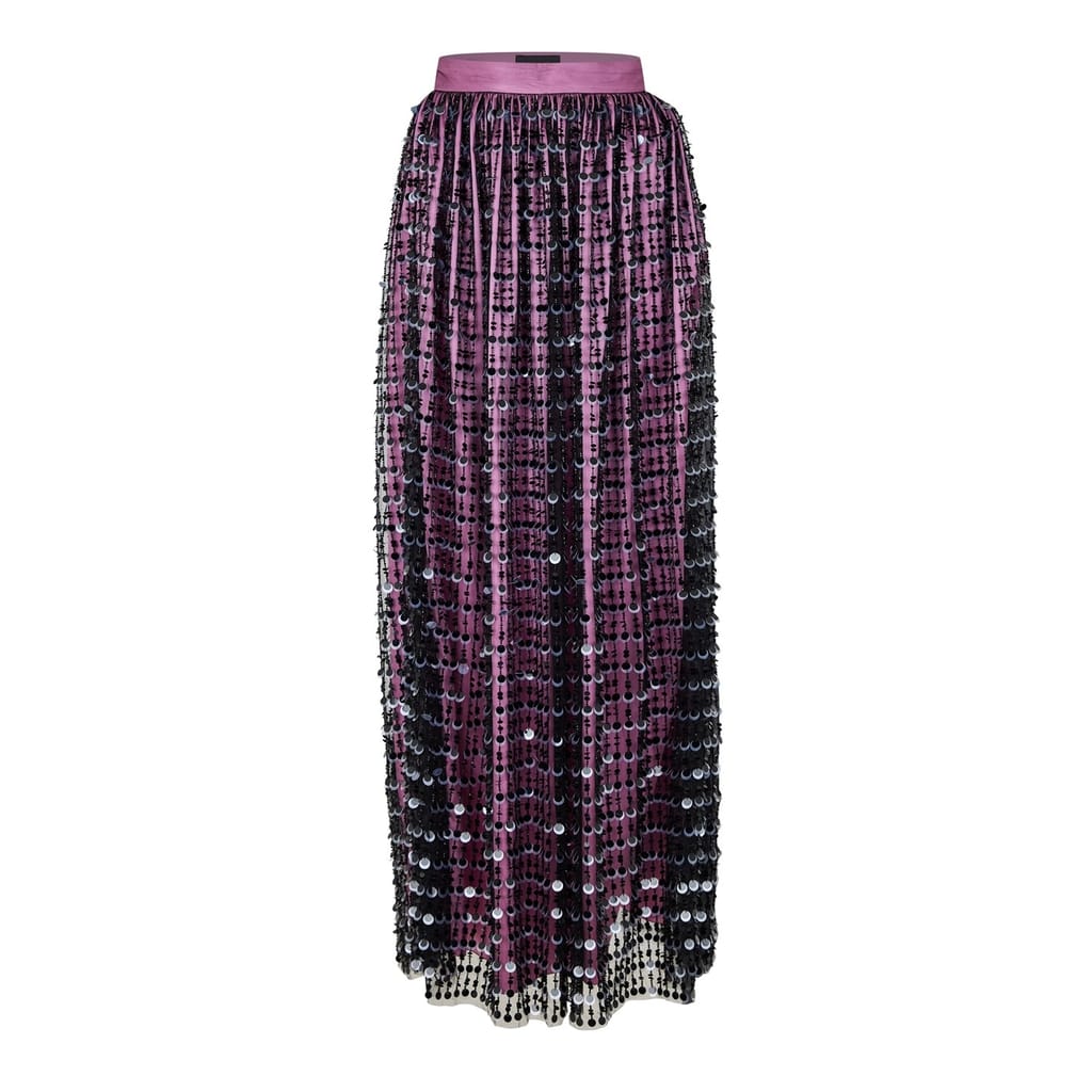 Emporio Armani presents a stunning maxi skirt, perfect for casual collections. This elegant piece is adorned with sequins, adding a touch of glamour to your wardrobe. Ideal for those seeking a blend of sophistication and style. -