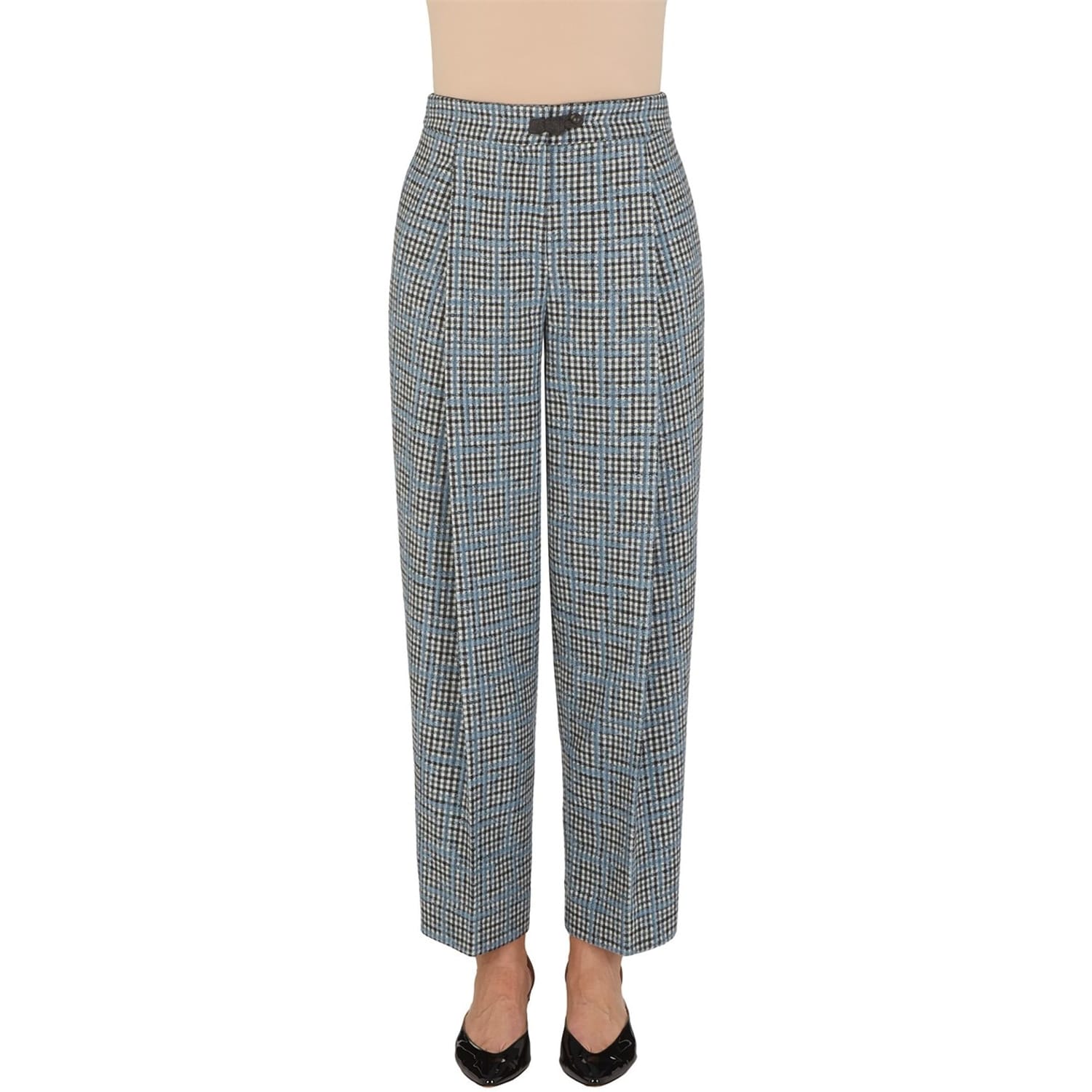 Emporio Armani presents these plaid trousers, a stylish addition to your wardrobe. Featuring a buckle closure and belt loops, these pants offer both functionality and a touch of sophistication. The plaid pattern adds a classic element, making them a versatile choice for various occasions. -