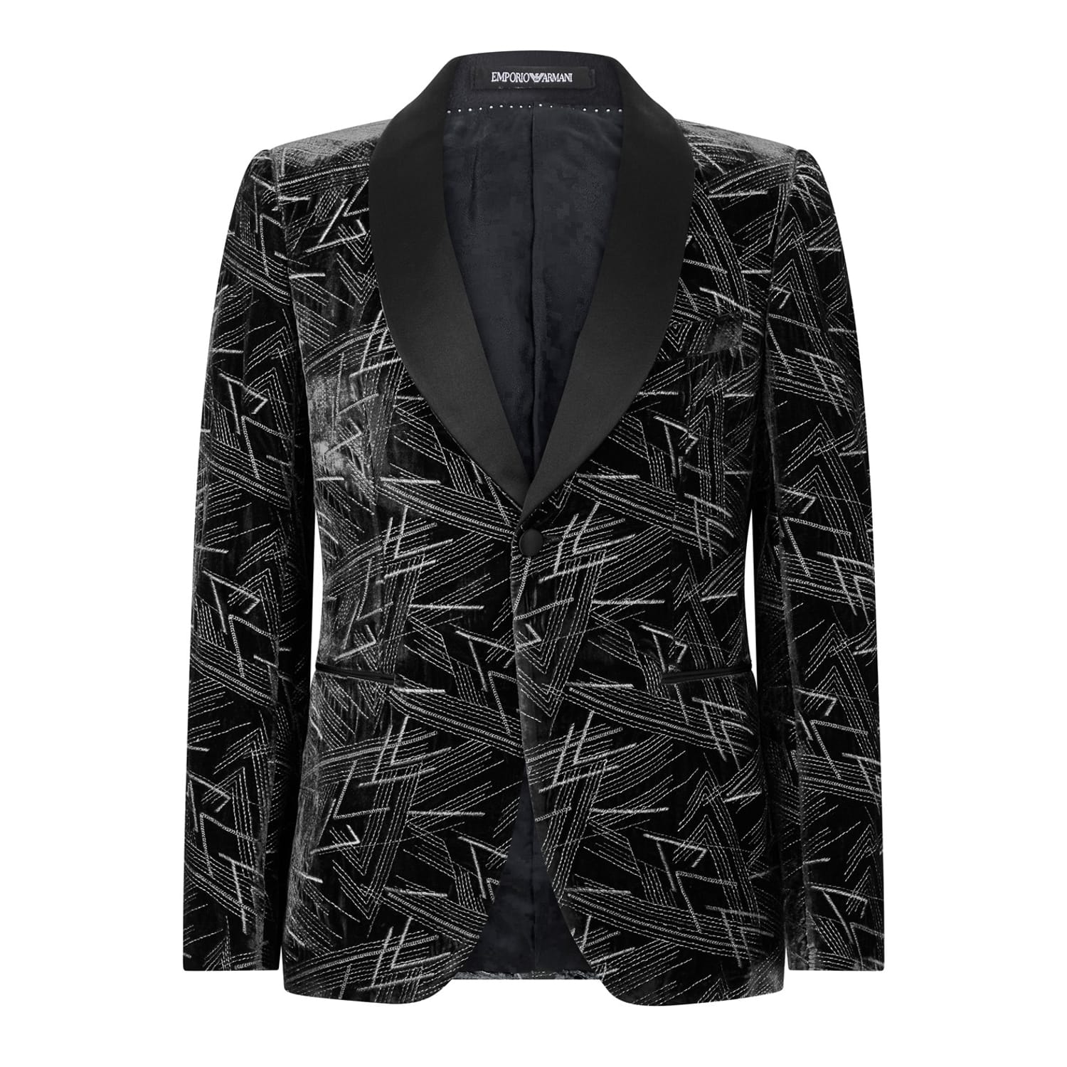 The Armani Exchange puffer jacket is a stylish addition to any wardrobe. This short jacket features a shawl collar and a geometric pattern, offering a modern twist on a classic design. Its regular fit ensures comfort, while the button closure and pockets add practicality. Ideal for keeping warm in cooler seasons. -