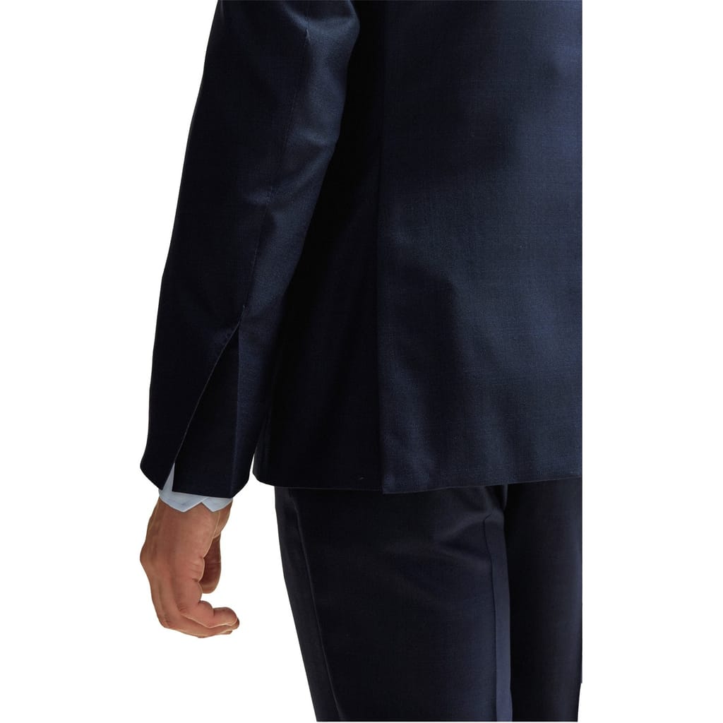 Elevate your formal wardrobe with the Boss suit jacket. Crafted in a solid pattern, this jacket features a classic notch collar and a button closure. Designed in a slim fit, it includes practical pockets and a straight hemline, making it a refined choice for formal occasions. -