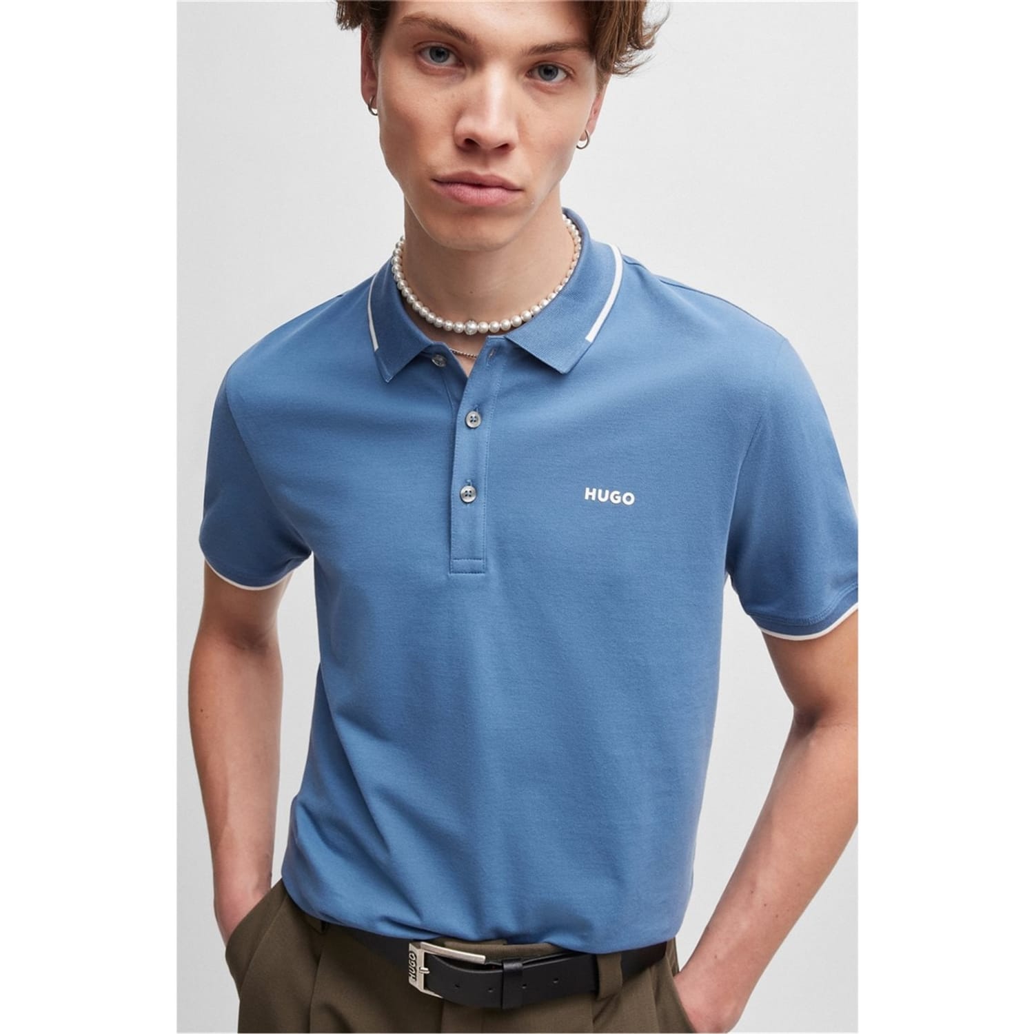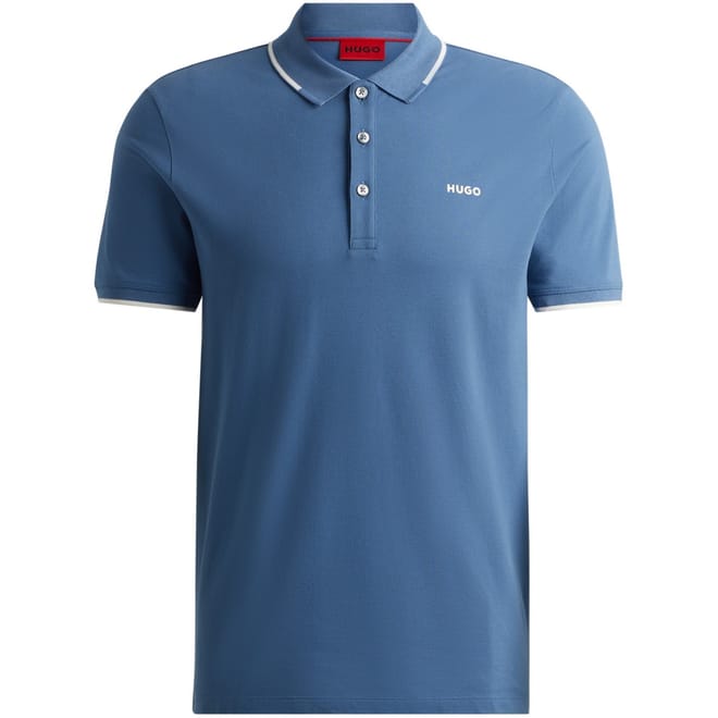 Enhance your collection with this HUGO Dinoso Polo Shirt. Constructed with a folded collar and a three-button placket for a secure fit, it features short sleeves with comfortable ribbed trims for a classic look. Decorated in a solid colouring throughout for understated designer completion. Whether hitting the beach club or heading out into the city with friends, embrace a stylish staple.