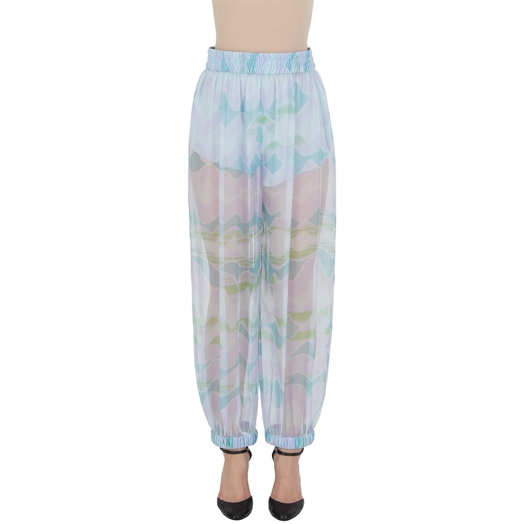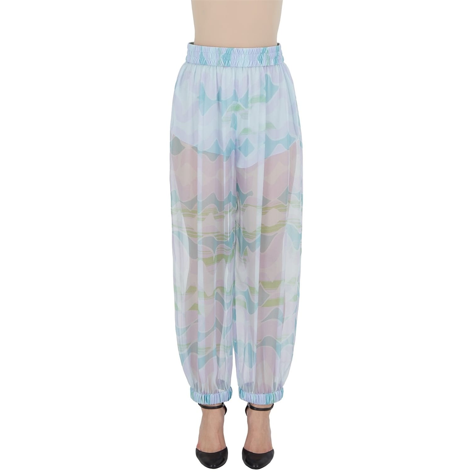 Discover the Emporio Armani pants featuring a geometric pattern and wide leg cut. These stylish trousers come with a drawstring closure and an elasticated waistband for a comfortable fit. The design is completed with practical pockets, making them a versatile addition to your wardrobe. -