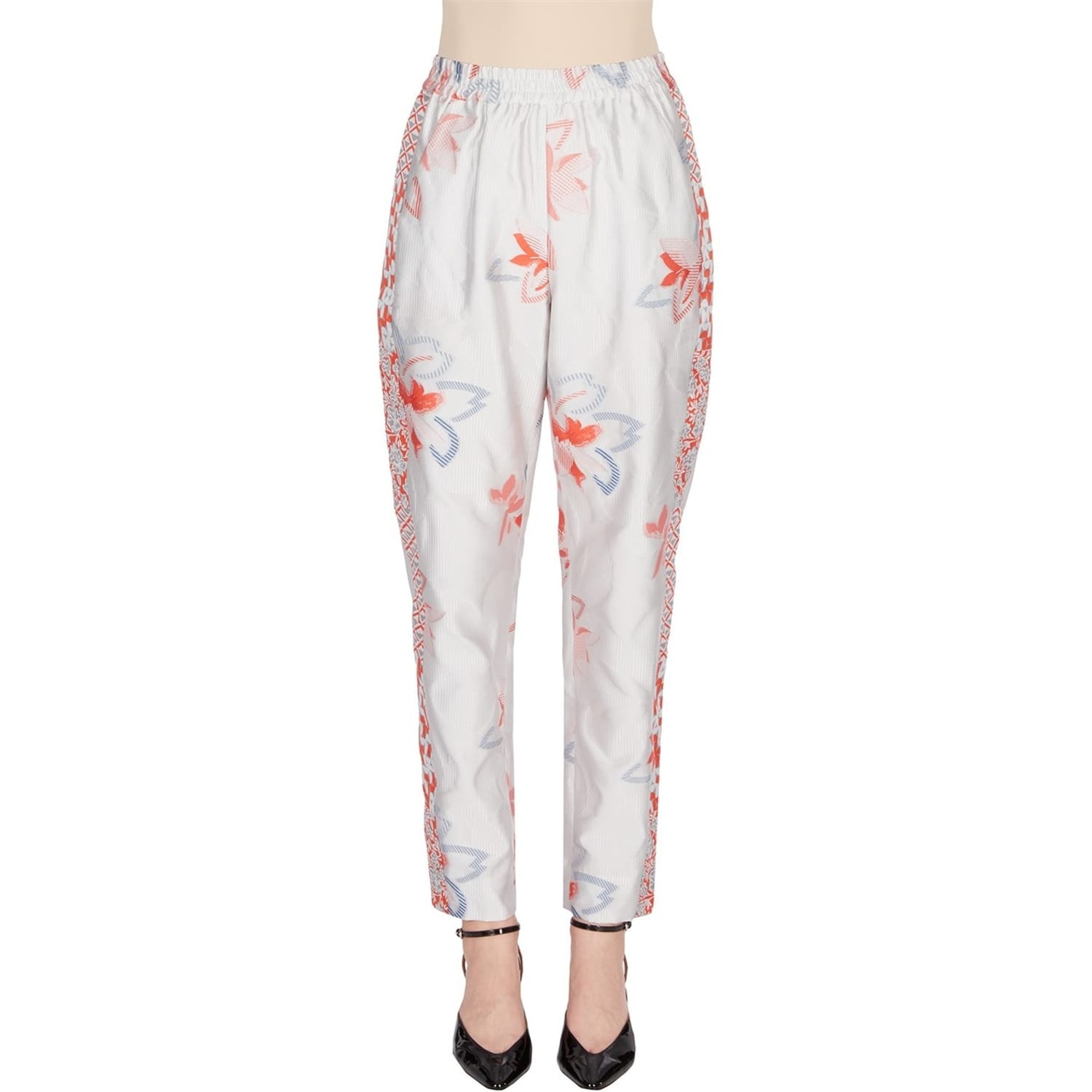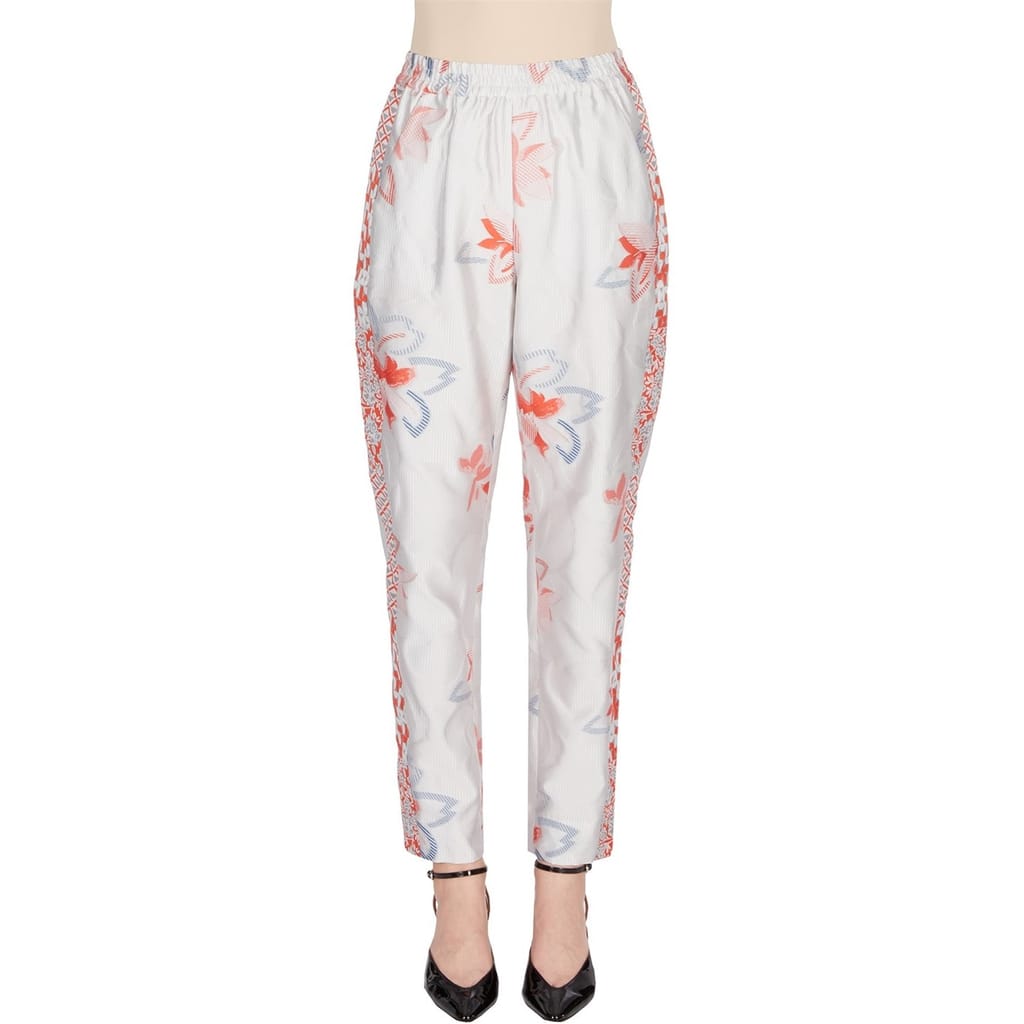 These Emporio Armani floral trousers feature an elegant design with an elasticated waistband for comfort. The floral pattern adds a touch of sophistication, making them a stylish choice for various occasions. -