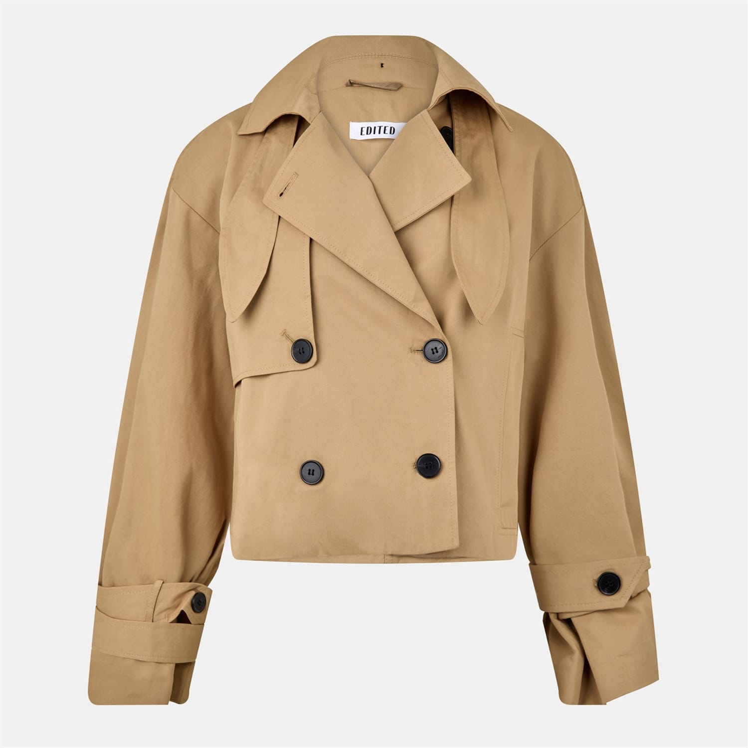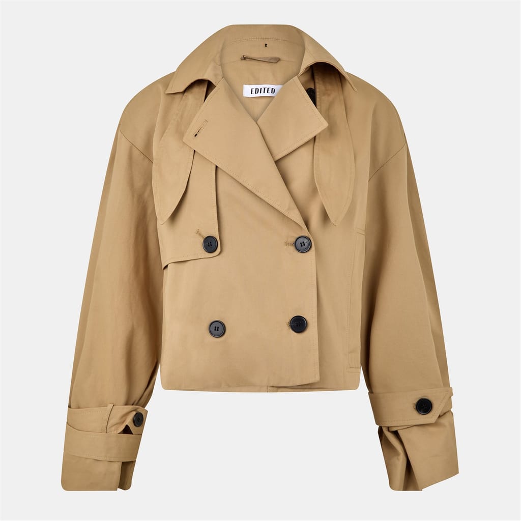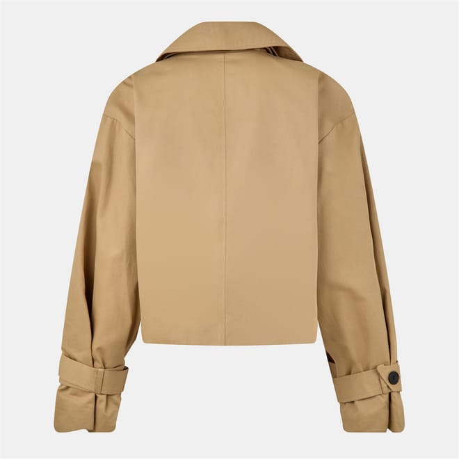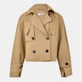 Lightweight cropped trench jacket, double breasted with tie neck detail and sleeve straps