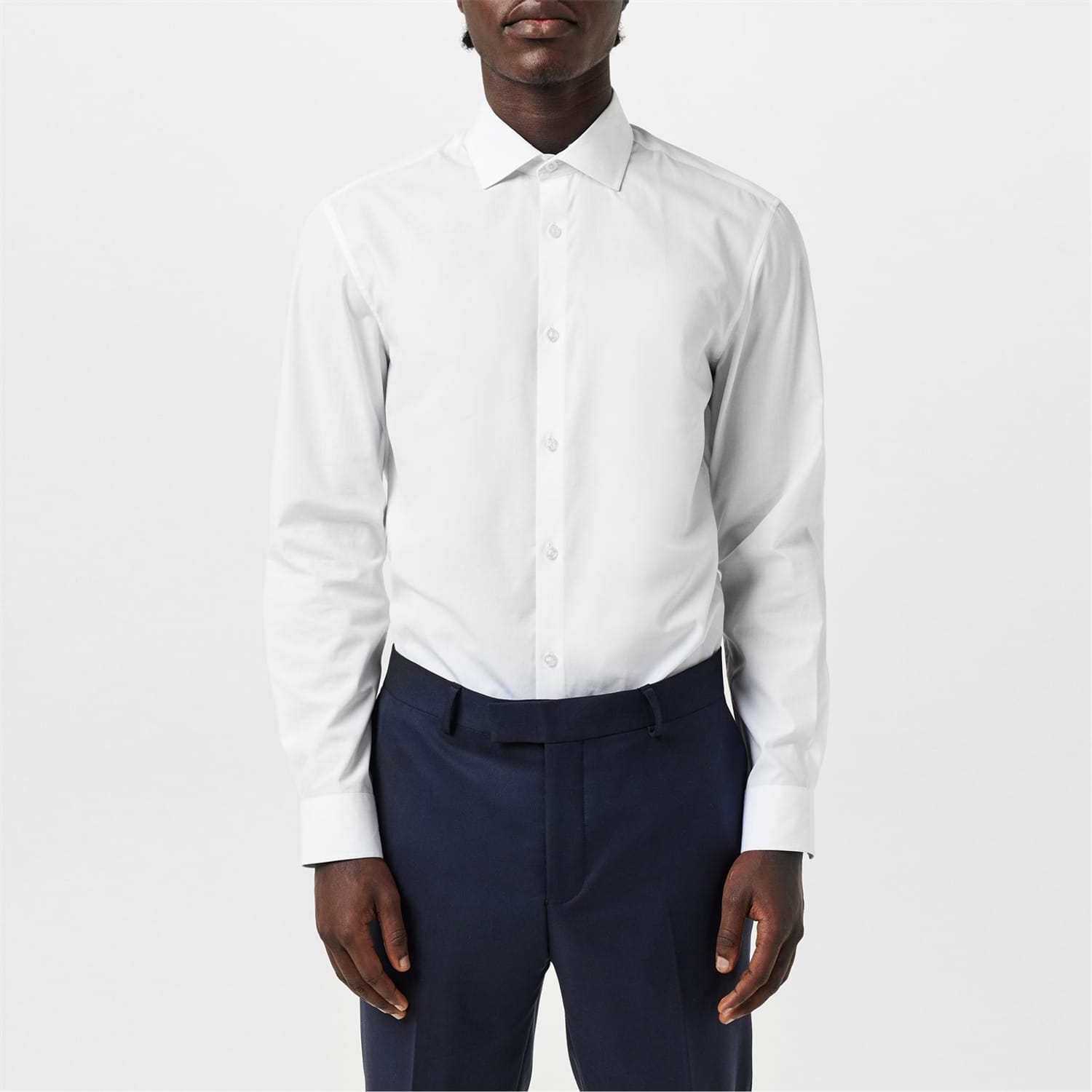 - Featuring a single mitred cuff and a spread collar.