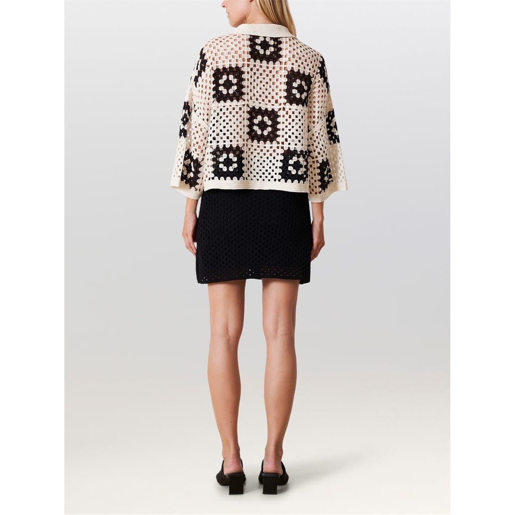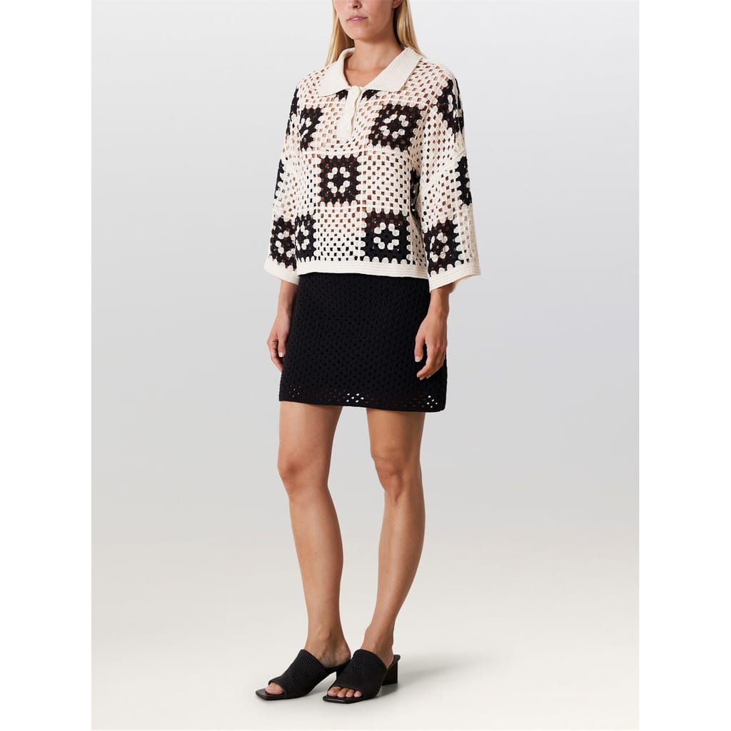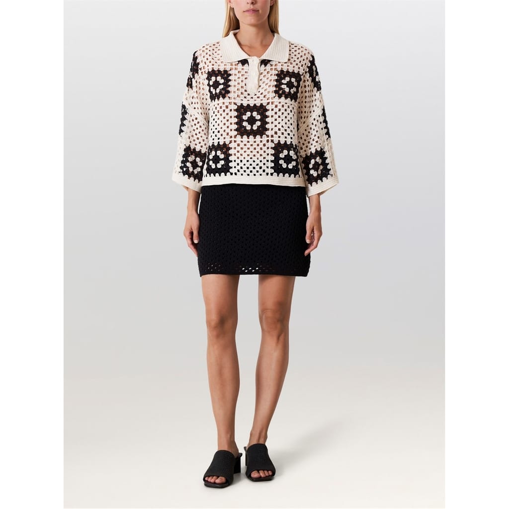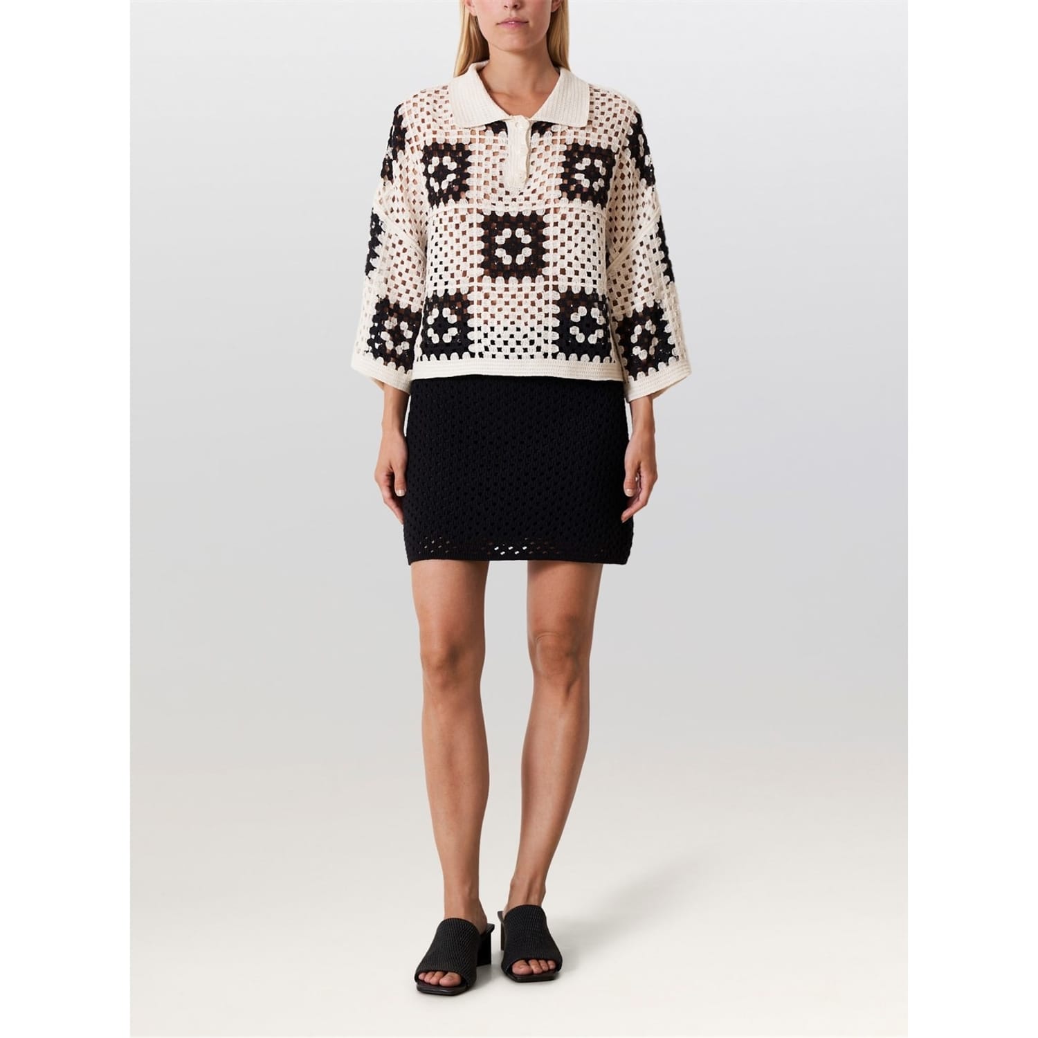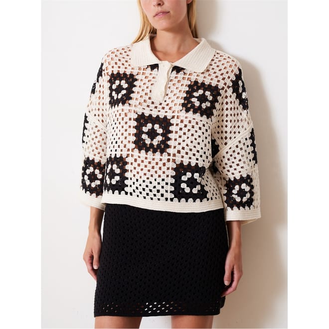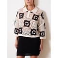 Crochet Polo top with 3/4 sleeve an contrast patches