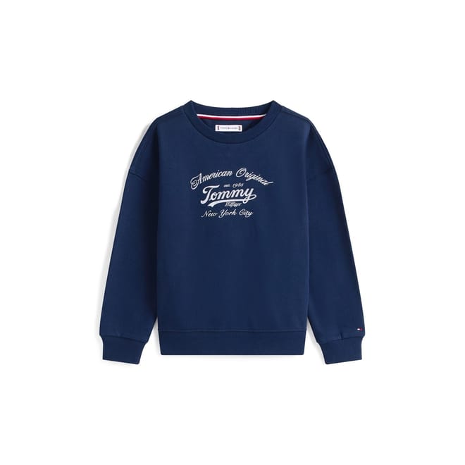 Tommy Hilfiger's Kids' Script Crew Sweatshirt offers American design with comfort for children. The script logo stands out against the fabric, creating a piece for casual everyday styling that works perfectly for any youth, whether girl or boy.