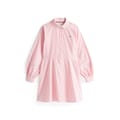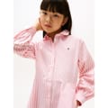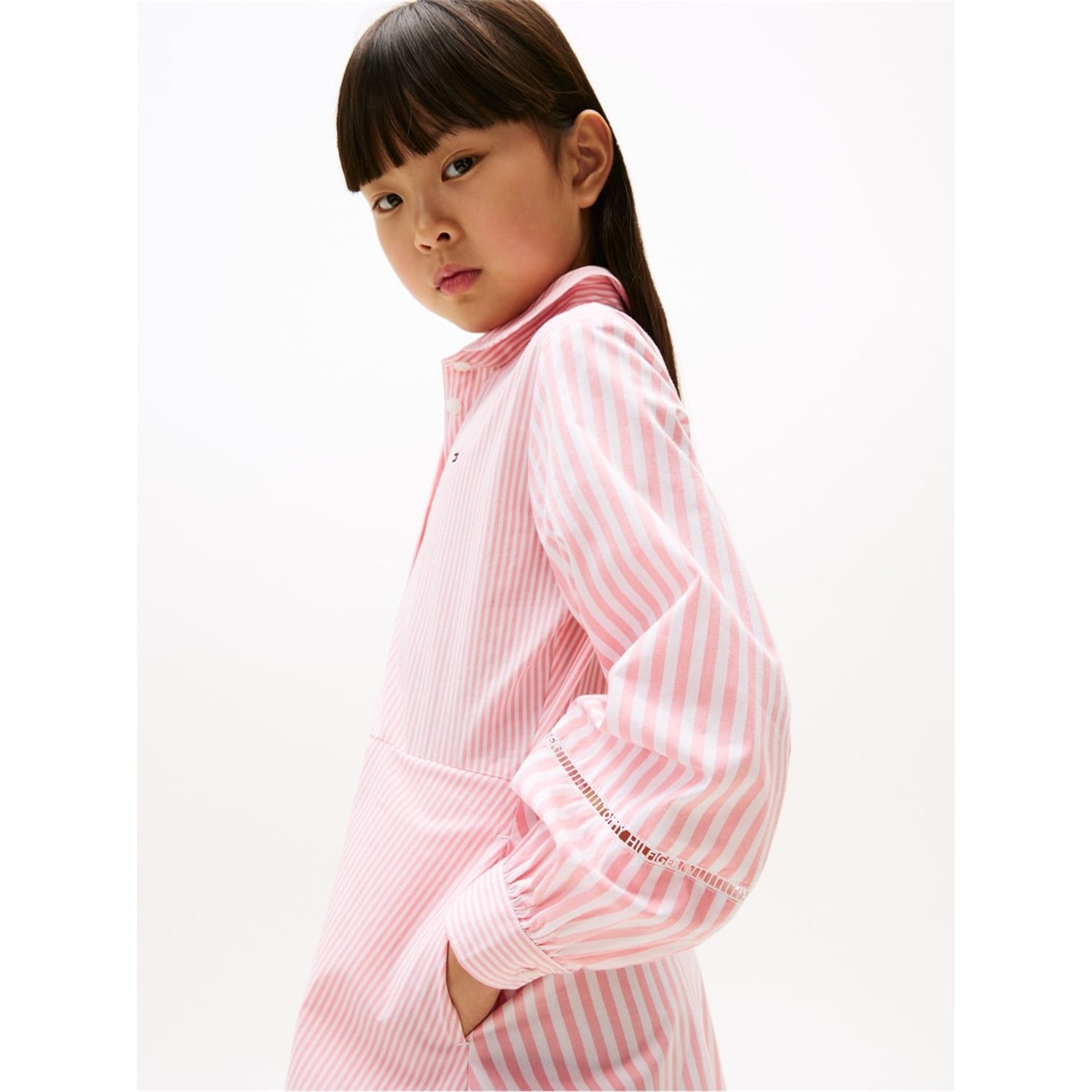 This Tommy Hilfiger shirtdress is a stylish addition to your wardrobe. Crafted in a mini length, it features a classic shirt collar and a collared neck, complemented by bishop sleeves. The dress showcases a stripe pattern and a straight hem, with a button closure for easy wear. The regular fit ensures comfort, while the logo embellishment adds a touch of brand identity. -