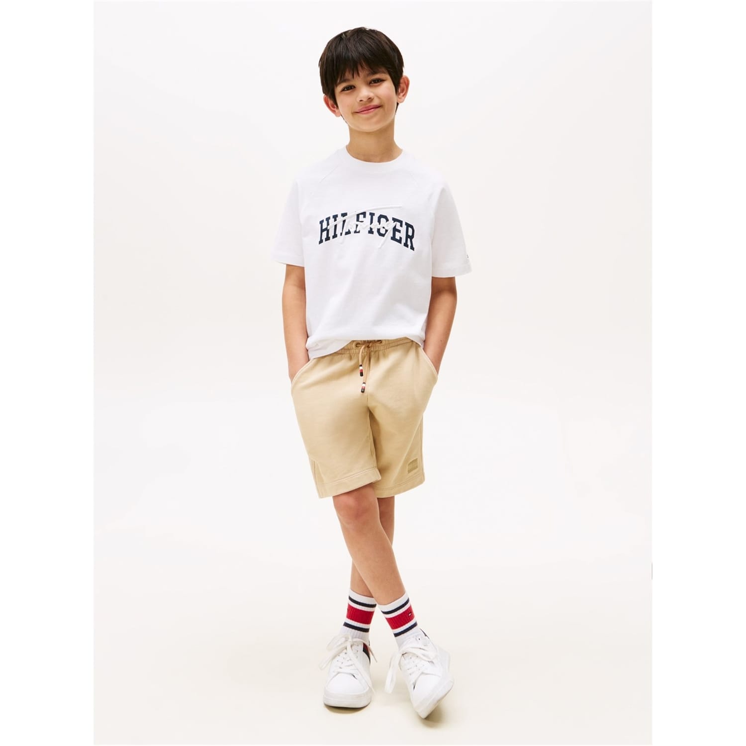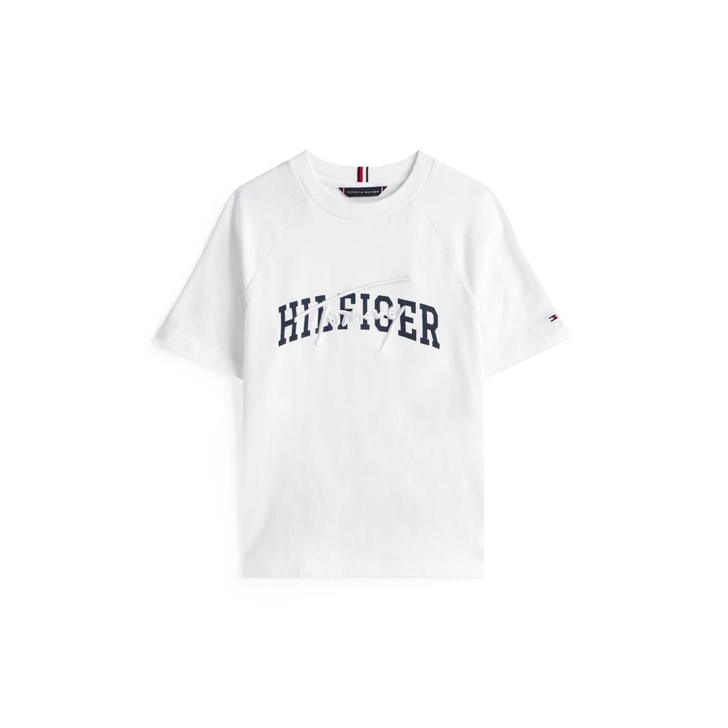 This Tommy Hilfiger top features a regular fit with a crew neck and short raglan sleeves. The graphic pattern adds a stylish touch, making it a versatile addition to your wardrobe. -