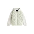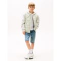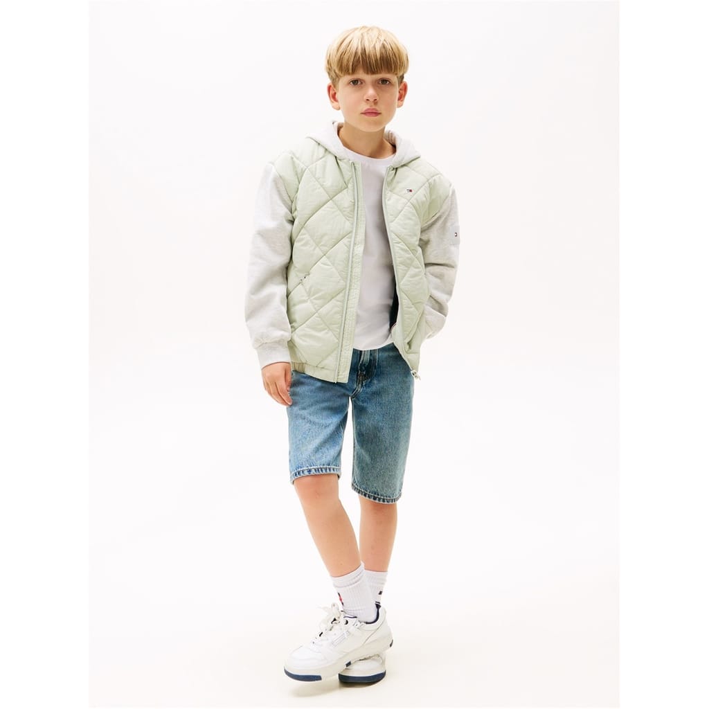 This Tommy Hilfiger quilted puffer jacket features a hooded neckline and a convenient zipper closure. Designed with a regular fit, it includes ribbed cuffs and hem for added comfort. The jacket is embellished with the iconic logo, offering a stylish touch to this practical outerwear piece. -