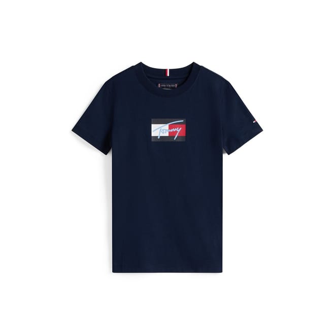 This Tommy Hilfiger top features a regular fit and a classic crew neck. The short sleeves and graphic print add a stylish touch, while the logo embellishment provides a signature finish. -