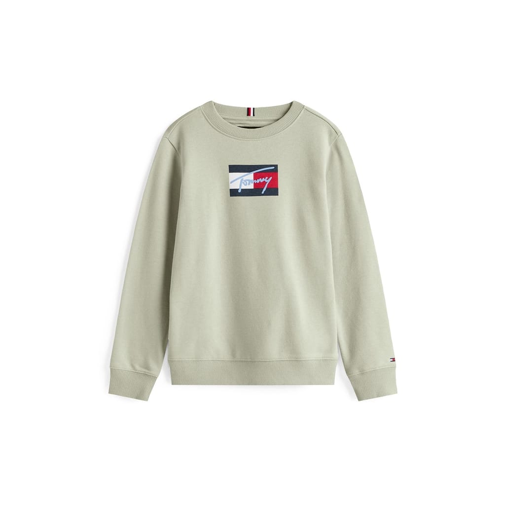 This Tommy Hilfiger top features a crew neck and long sleeves, offering a regular fit. The ribbed collar and cuffs add a touch of detail, while the graphic print and logo embellishments provide a stylish finish. -
