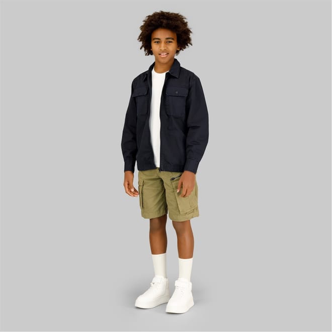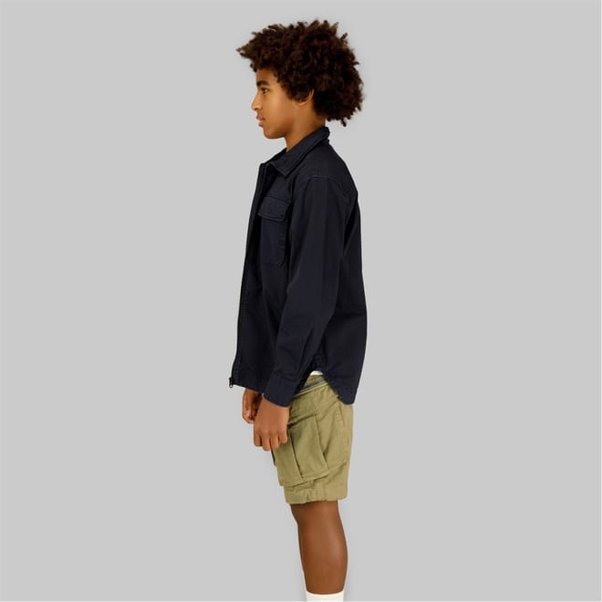 This G-Star overshirt is designed for juniors, featuring a regular fit and a solid pattern. It comes with a shirt collar and a straight hem, offering a classic look. The overshirt includes a convenient zipper closure and practical pockets, making it both stylish and functional. -