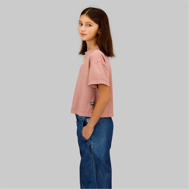 This G-Star junior top is a casual essential, featuring a cropped length and a crew neck. The short sleeves and regular fit ensure comfort, while the solid pattern adds a classic touch. Embellished with logo lettering, this top is perfect for a stylish, everyday look. -