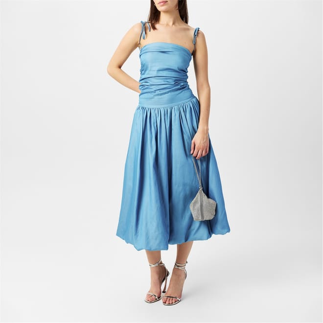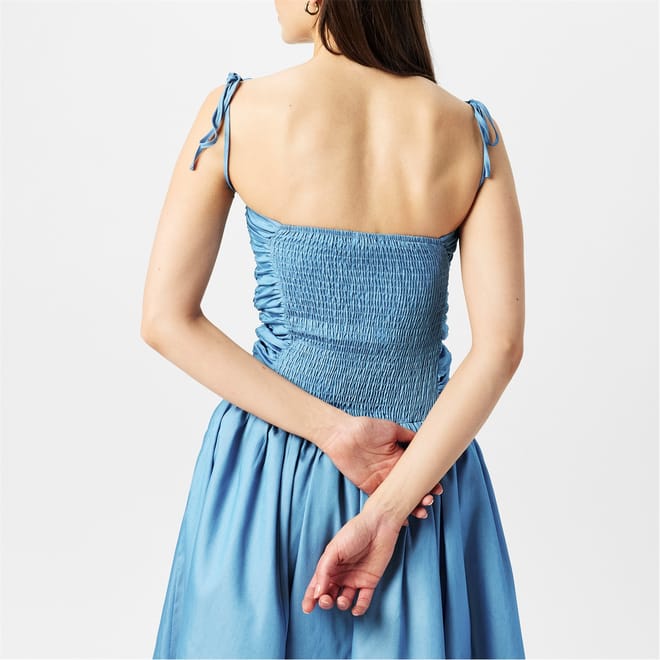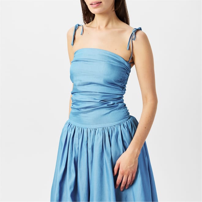 The Amylynn Ultra Lynn mini dress is a stylish peplum dress with a square neckline and tie shoulder design. This solid-coloured dress features a slim fit, offering a chic and modern look. Perfect for those seeking a fashionable and elegant addition to their wardrobe. -