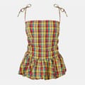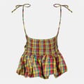 This Amylynn top features a stylish square neck and a classic plaid pattern. The sleeveless design adds a touch of elegance, making it a versatile addition to your wardrobe. -