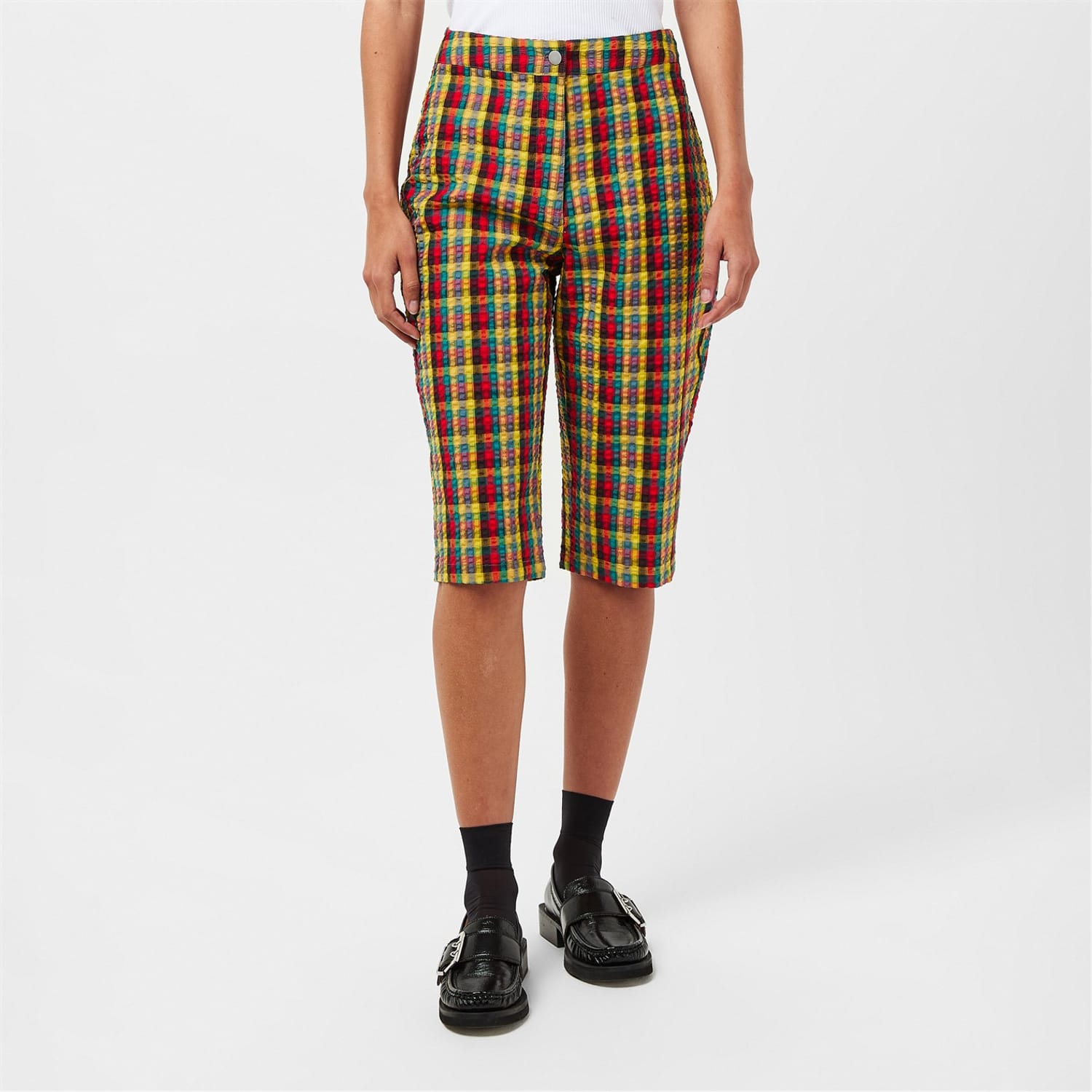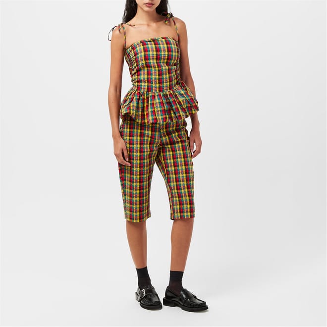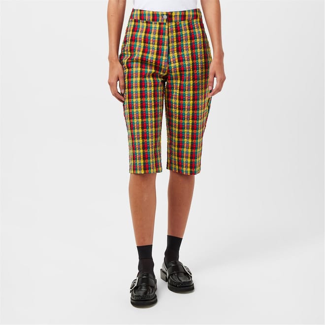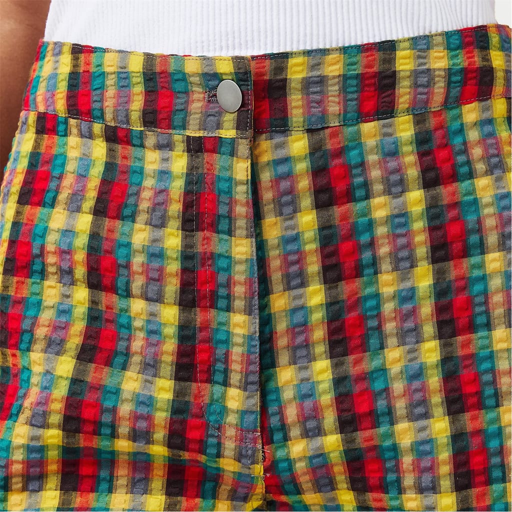 Discover the Amylynn culotte pants, featuring a chic plaid pattern and a cigarette leg cut. These pants are designed with a button closure and practical pockets, offering both style and functionality. Perfect for those seeking a fashionable yet comfortable addition to their wardrobe. -