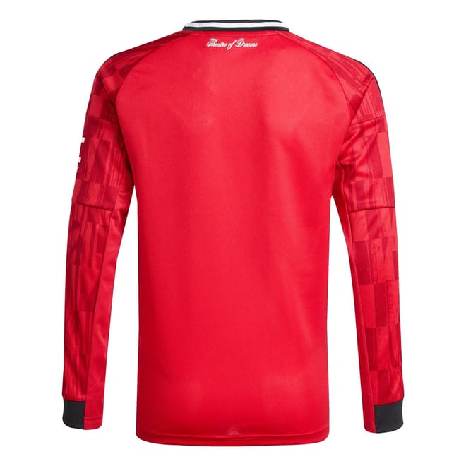 Treat your young footballer to adidas' Manchester United Long Sleeve Home Shirt. Based on the strip worn by your future goalscorer's heroes, this football jersey is perfect for cheering on the squad on match days, non-uniform days at school or kickabouts with friends.