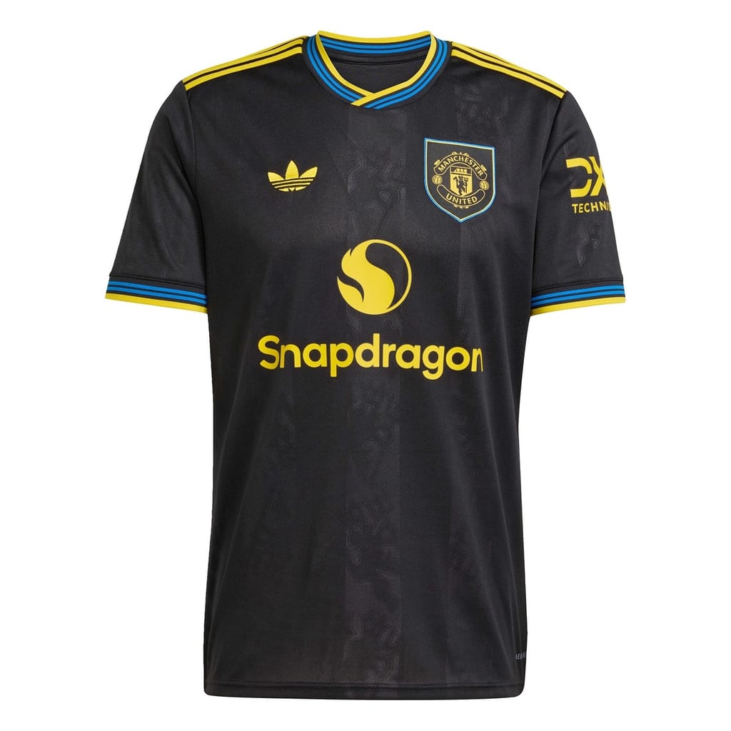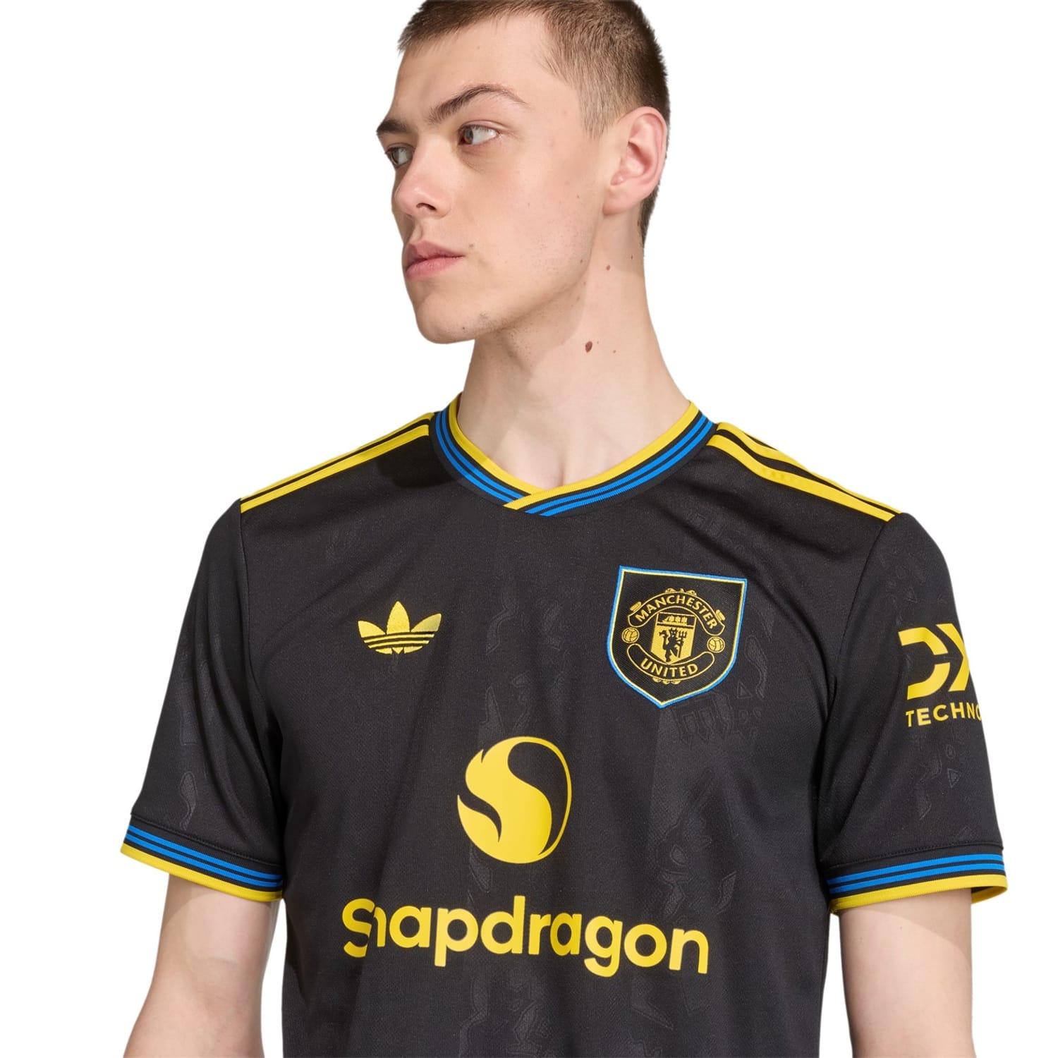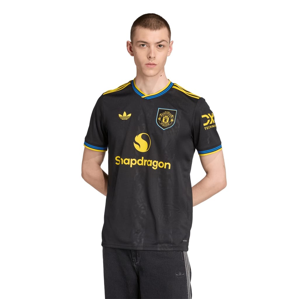 Move freely on the pitch with the adidas Manchester United Third Shirt for the 2025/2026 season. Featuring the iconic trefoil logo and 3 stripes for a mark of sporty style and athletic flair. Whether you're cheering from the stands or training for a big game, this football tee is the perfect companion for any Red Devils fan.