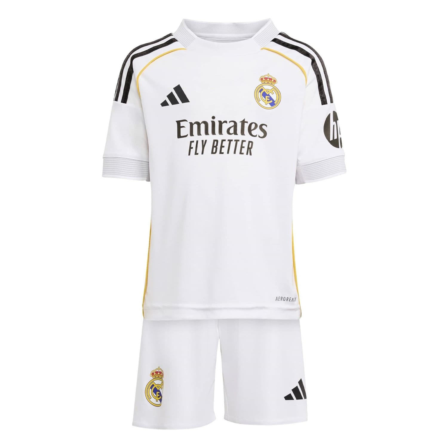 Let your rising football star support in style with adidas' Real Madrid Home Minikit for the 2025/2026 season. Featuring the iconic 3 bar logo and 3 stripes, providing a symbol of sporty style and performance. From watching their first game to playdates with friends, this two-piece football kit is the perfect companion.
