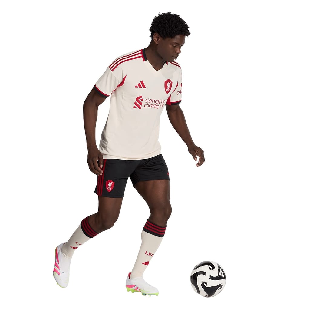 Elevate your sportswear with the adidas Liverpool Away Shorts 2025 2026. Designed in a sleek solid colourway for easy styling on the pitch, they're crafted with adidas AEROREADY that wicks away moisture, keeping you dryer for longer. Complete with contrasting adidas 3-Bar logo and the iconic club crest, these shorts are perfect for the training pitch, competing for greatness or exuding Reds style at home.