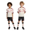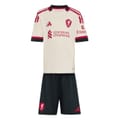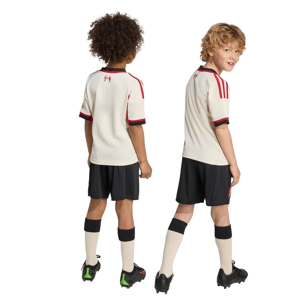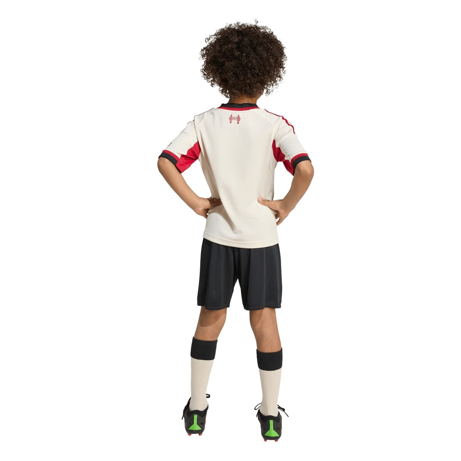 Let your rising football star support in style with the adidas Liverpool Away Minikit for the 2025/2026 season. Featuring the iconic 3 bar logo and 3 stripes for a signature and authentic finish. Whether cheering from the stands or having a kickabout with friends, this two-piece football kit is the perfect companion.