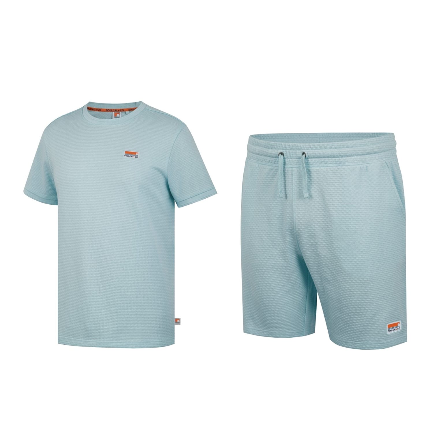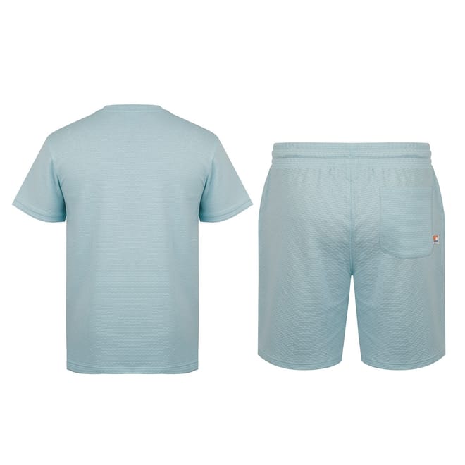 Discover the Soulcal top short set, perfect for casual outings. This set features a textured t-shirt with a crew neck and plain short sleeves, complemented by casual bermuda shorts. The ensemble is adorned with a subtle logo and practical pocket, adding a touch of style and functionality. Ideal for those seeking comfort and effortless style in their casual wardrobe. -