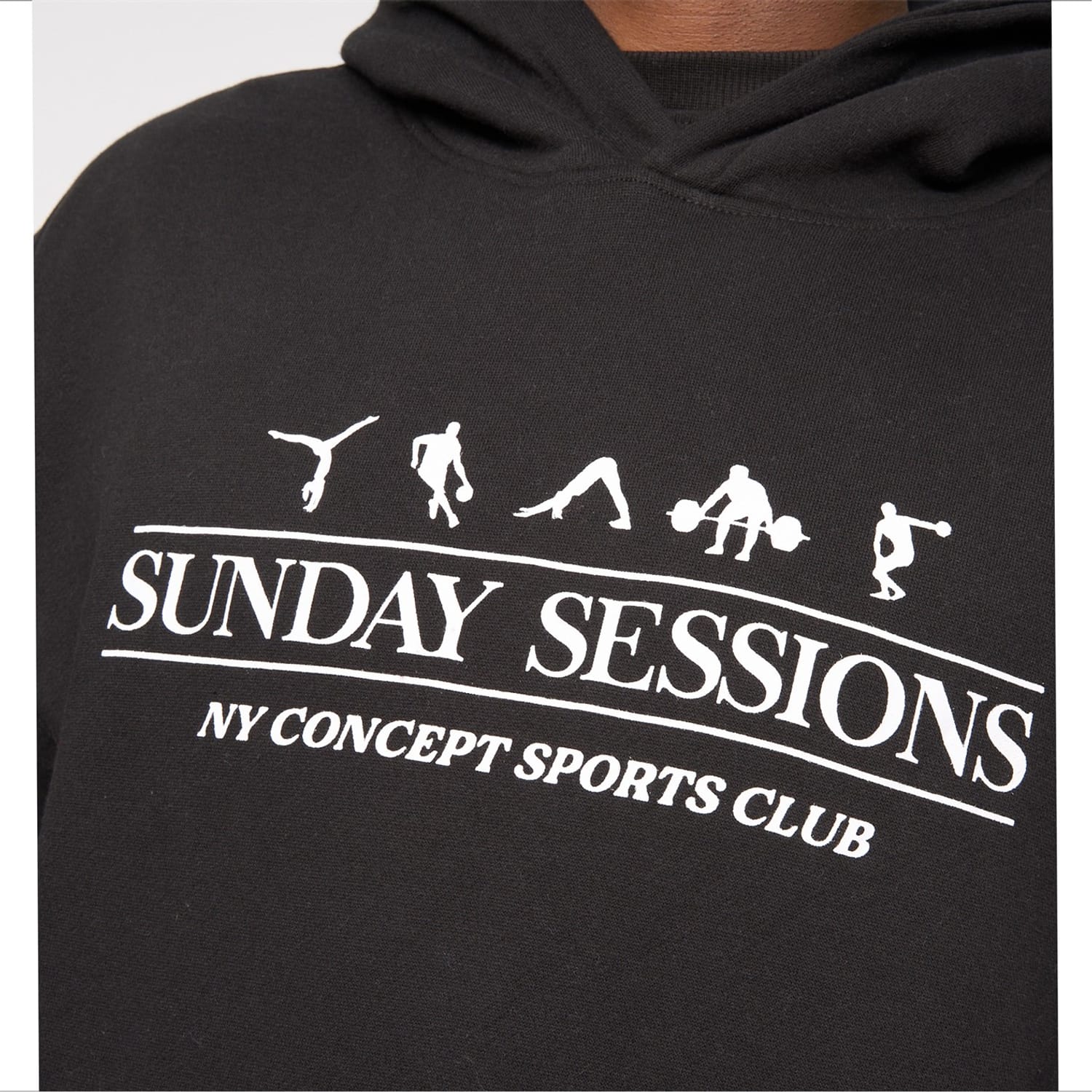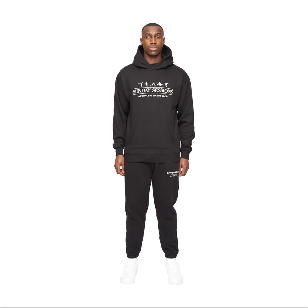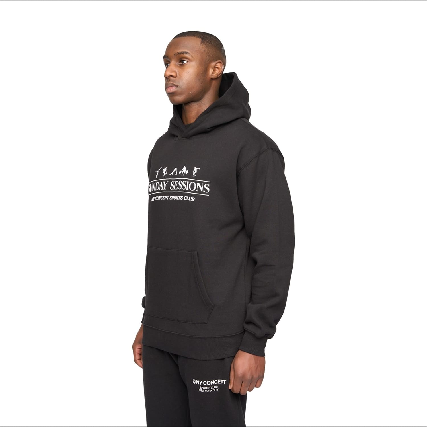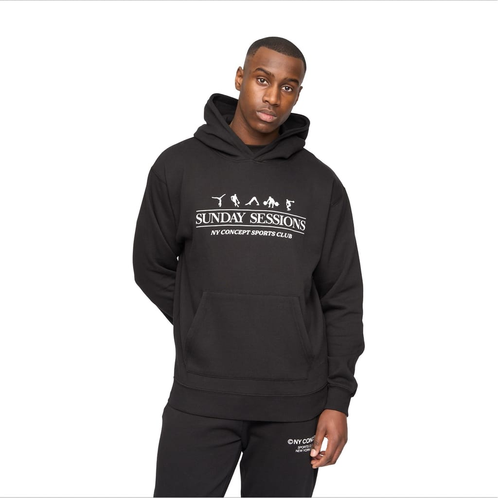 Pullover hoodie in a heavyweight jersey cotton. Drop shoulders providing a subtle oversized fit. Ribbed hem and cuffs. This hoodie features NY Concept session branding on the front and back of the garment.