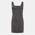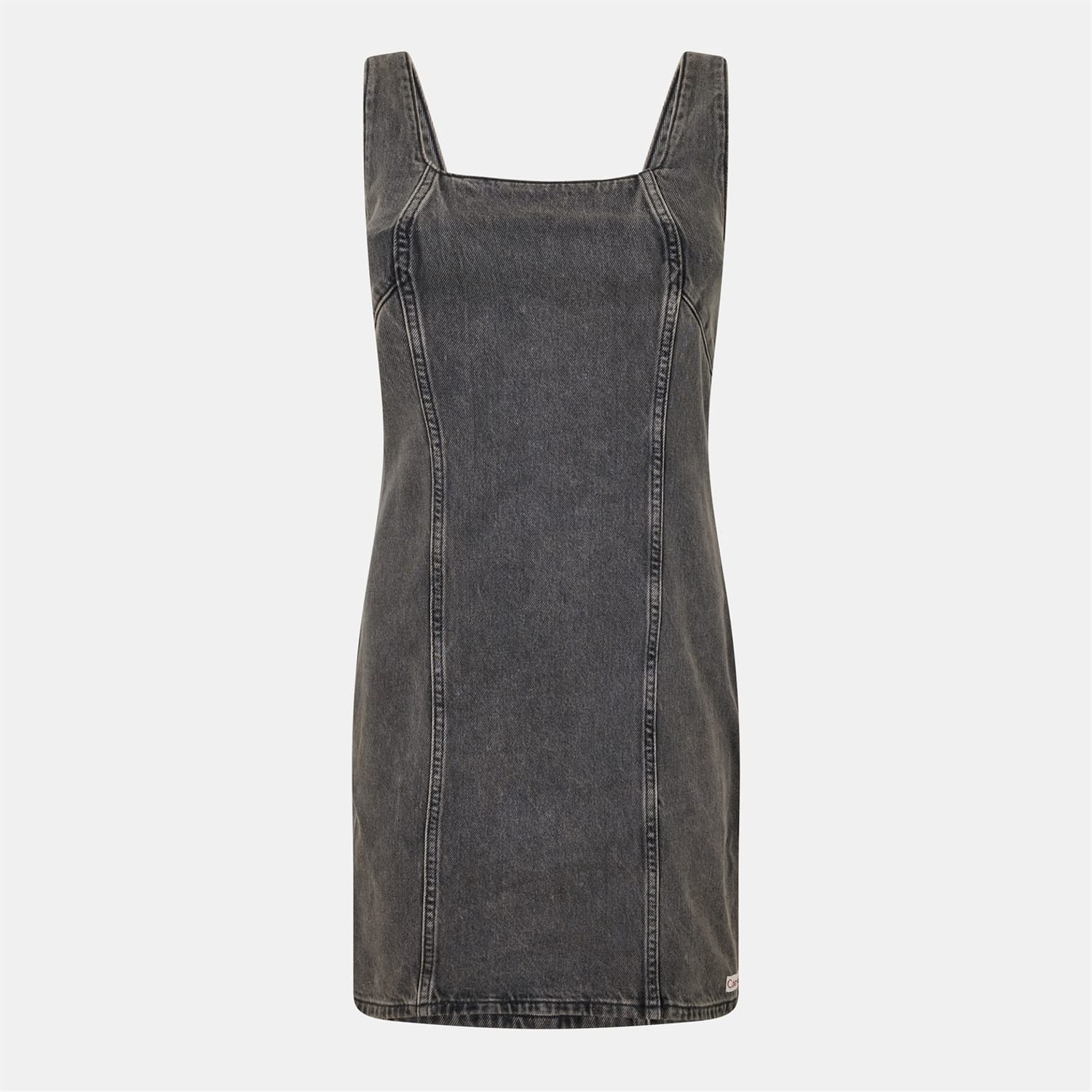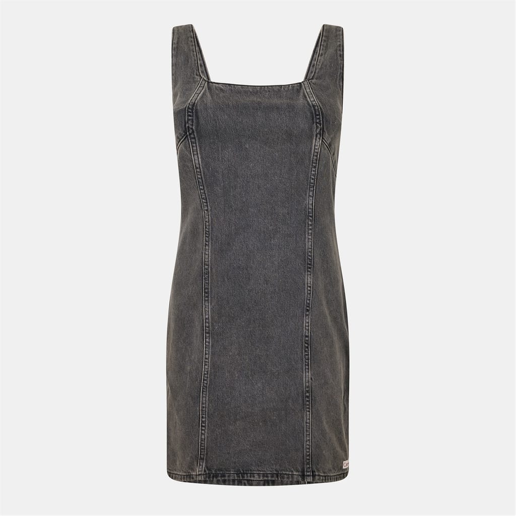 This Calvin Klein Jeans mini shift dress features a sleek square neckline and a straight hem. The solid pattern adds a touch of elegance to this sleeveless design, making it a versatile addition to any wardrobe. -