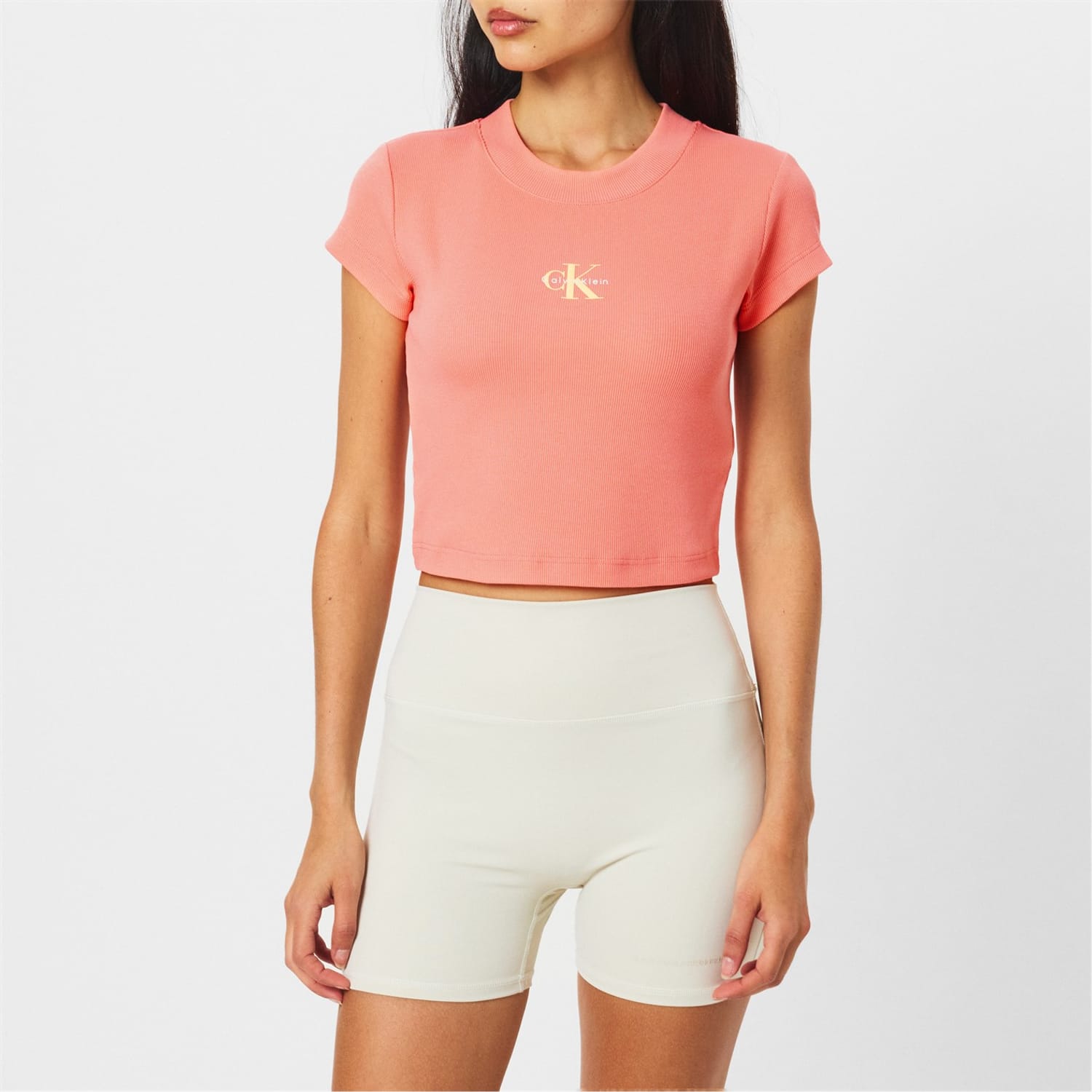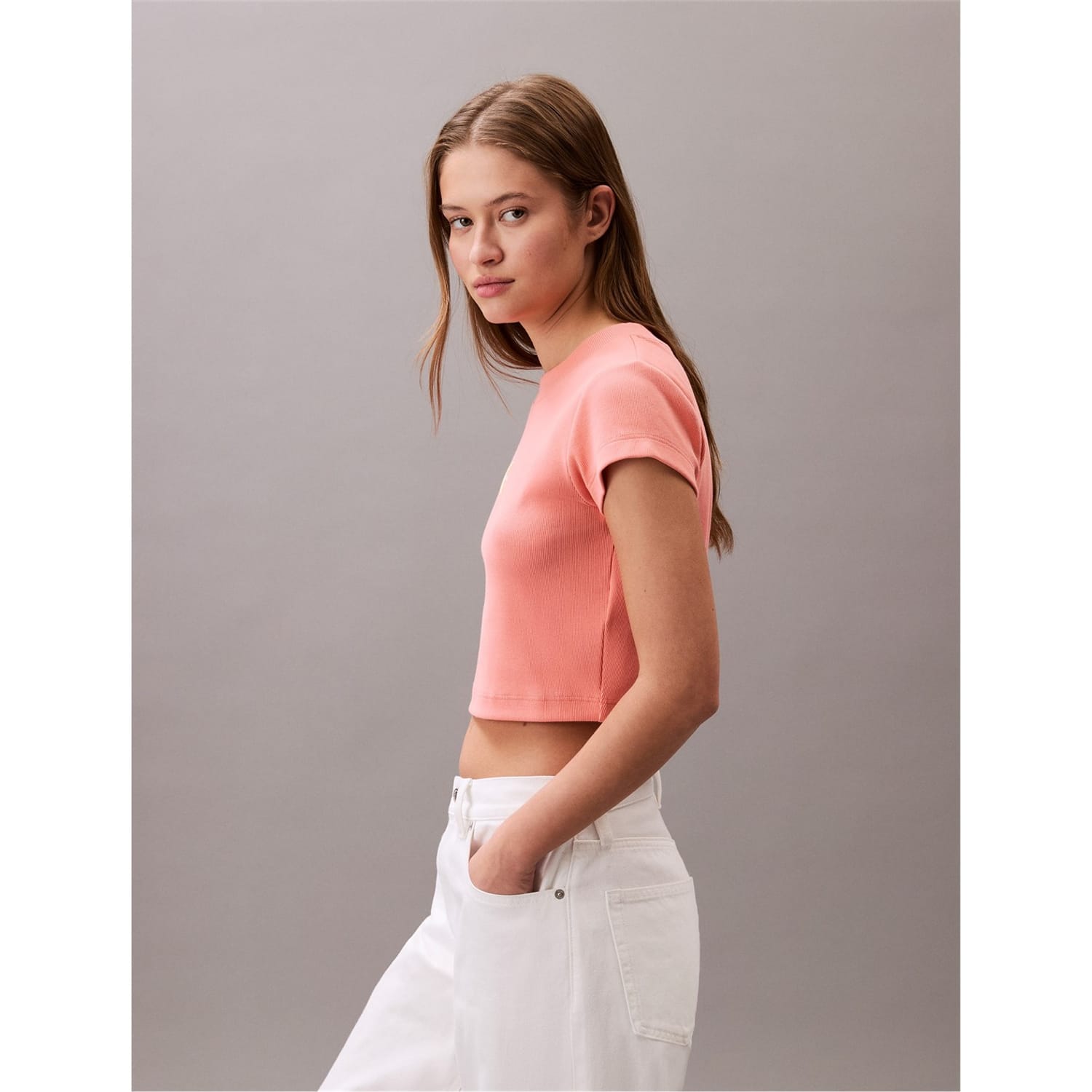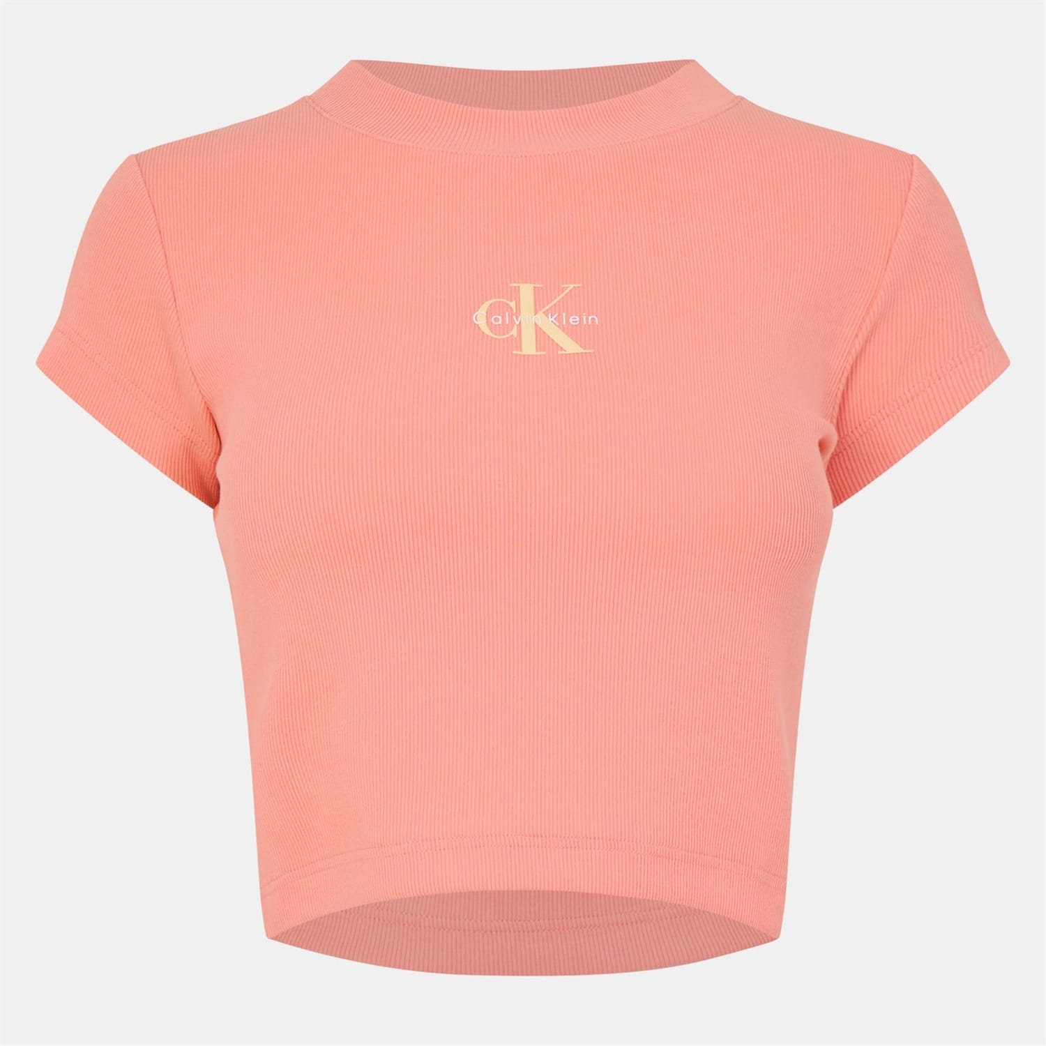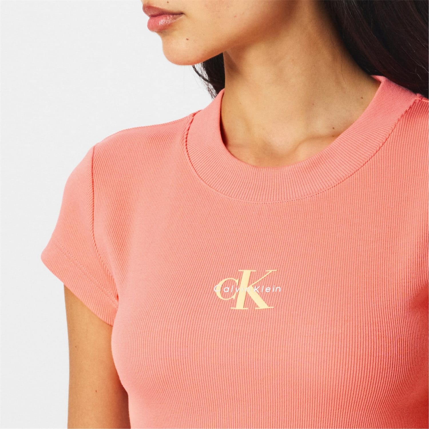 - Completing the look, the signature brand logo is elegantly embroidered on the chest, a mark of sophistication and quality. Ideal for casual outings or stylish gatherings, this Mono Rib Cropped T-Shirt from Calvin Klein Jeans is a versatile piece that transitions seamlessly from day to night.