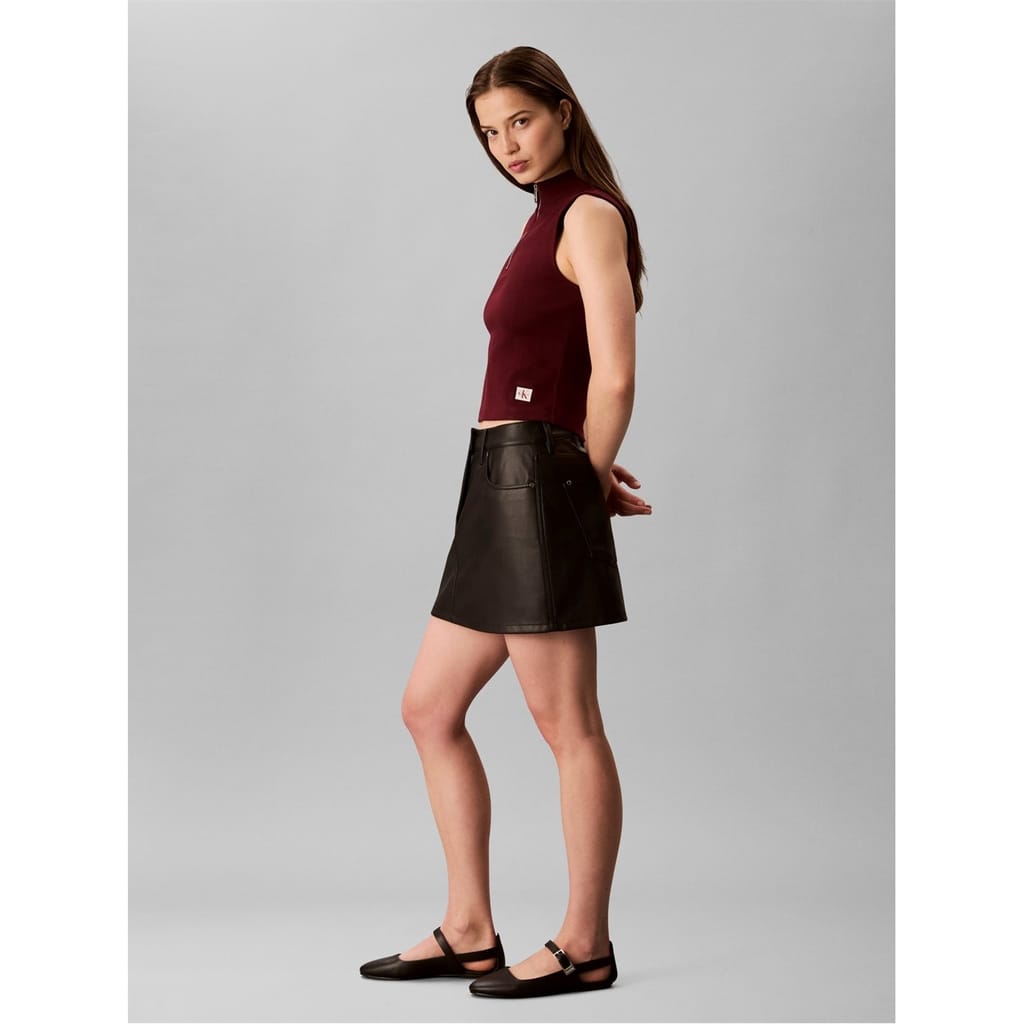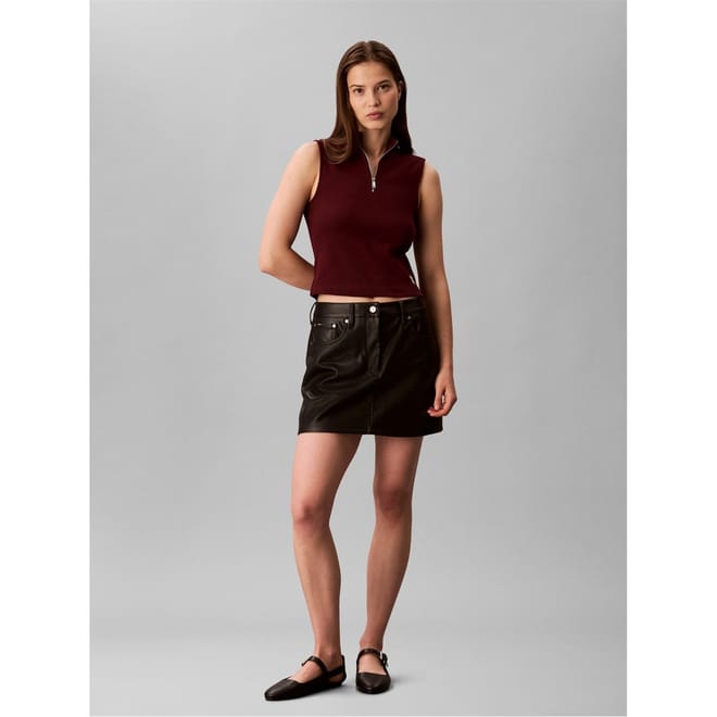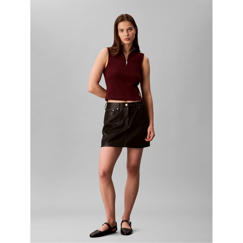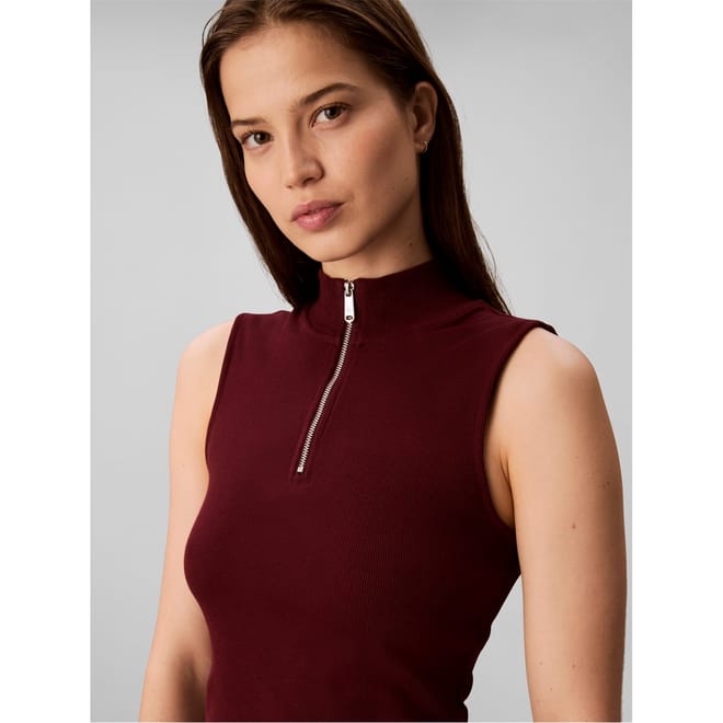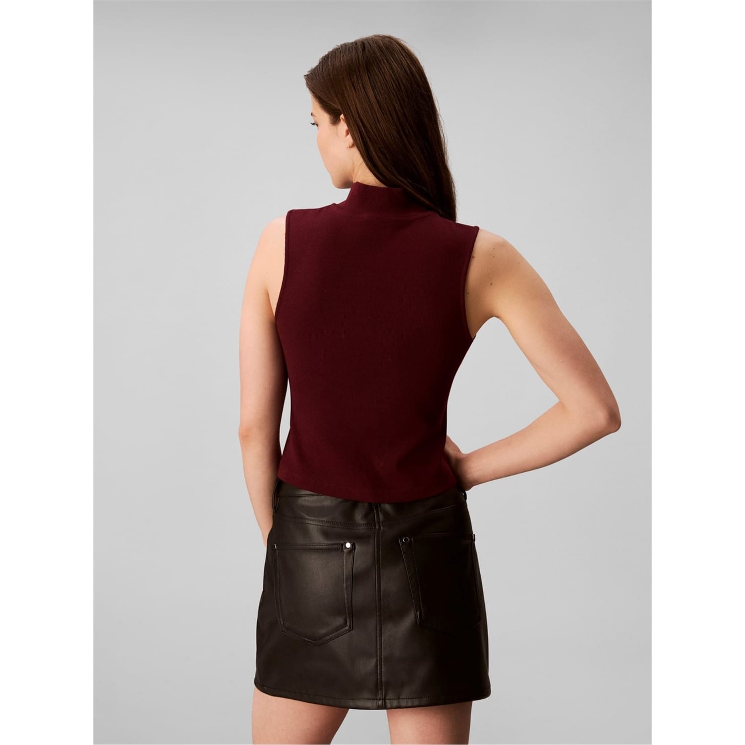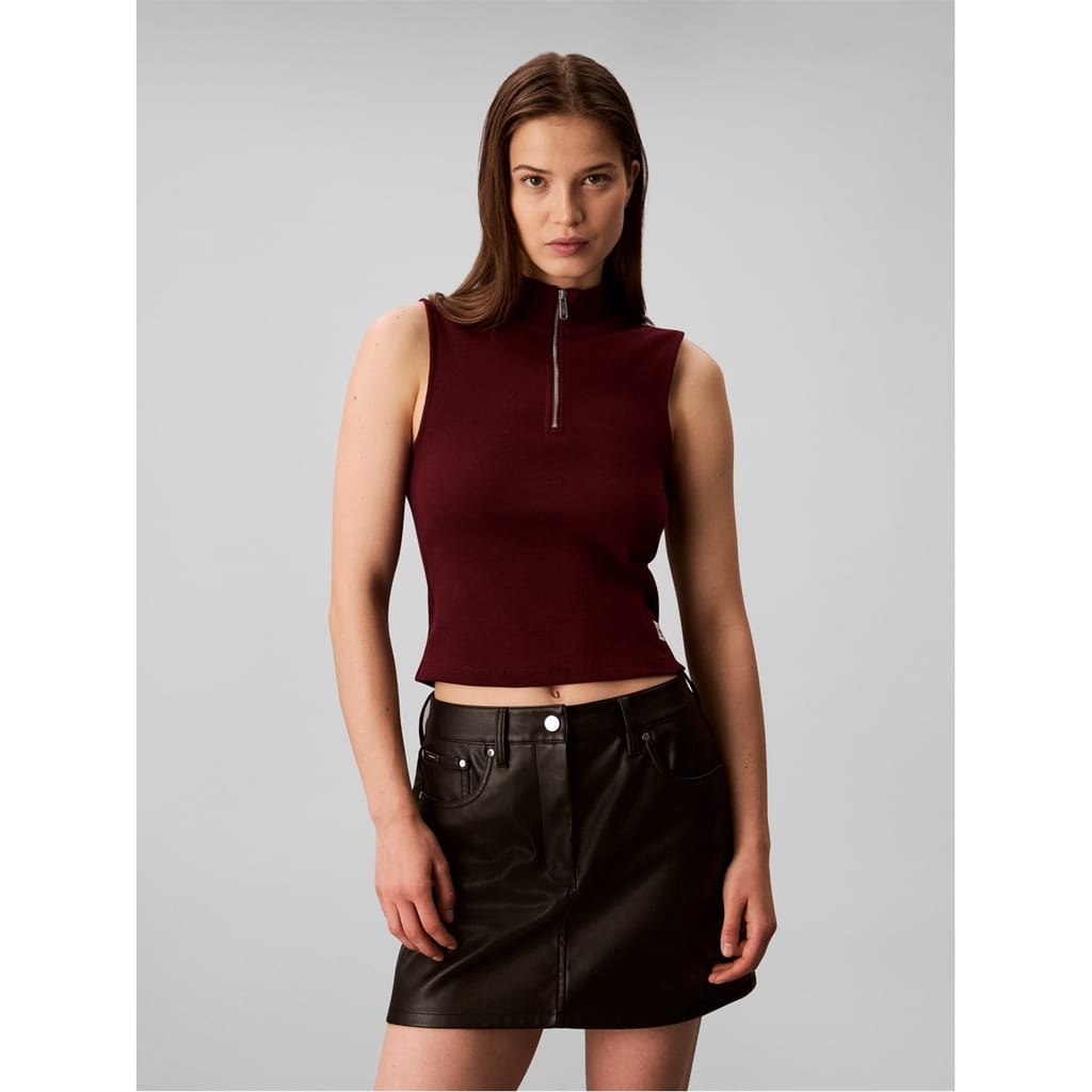 This Calvin Klein Jeans top features a sleek zip neck and a cropped design, perfect for a modern look. The sleeveless style and slim fit offer a flattering silhouette, while the solid pattern adds a touch of simplicity. A zipper closure completes the design, making it a versatile addition to your wardrobe. -