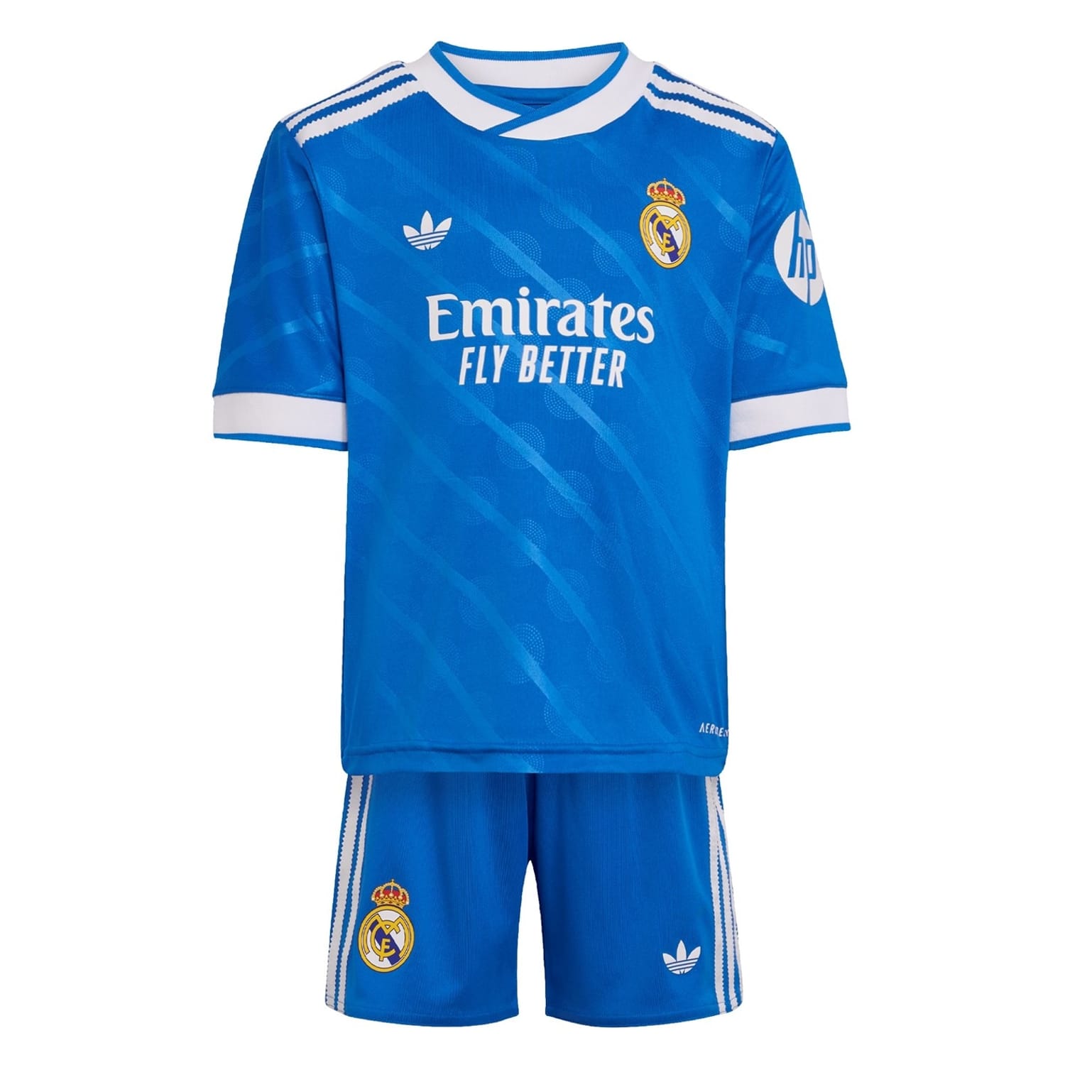 Let your little one show their support for Los Blancos with the adidas Real Madrid Third Minikit 2025/26. Featuring the classic adidas Originals colourway, this ikit includes a shirt built with moisture-wicking AEROREADY to help keep them comfortable. Finished with a vintage adidas Trefoil and club crest, it’s the perfect outfit for starting their love of the club, or ideal for training sessions.