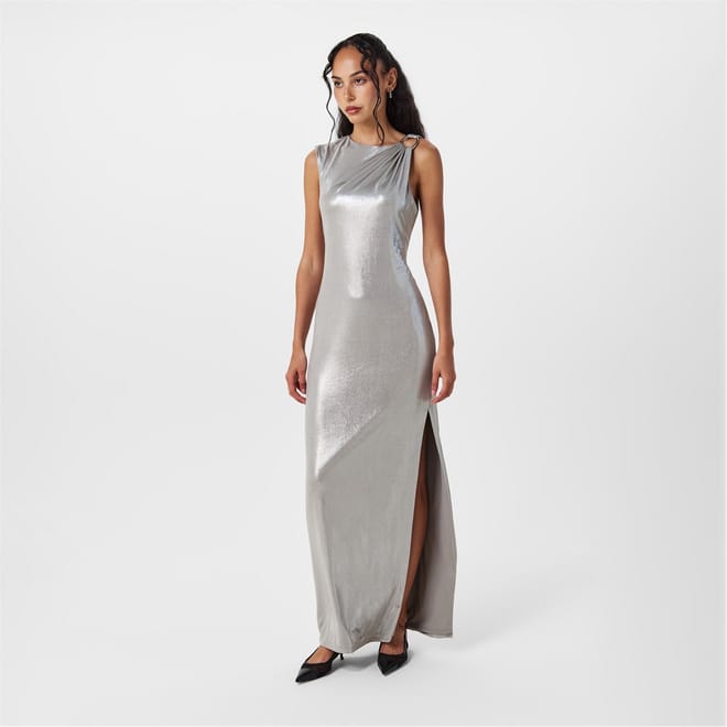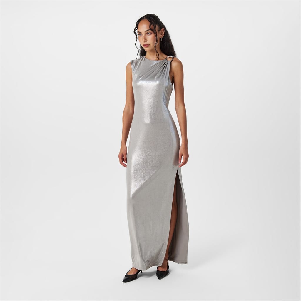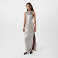 This Lauren by Ralph Lauren gown is a stunning maxi dress, perfect for making a statement. Featuring a crew neck and a slim fit, it offers a sleek silhouette. The metallic pattern adds a touch of glamour, making it an ideal choice for special occasions. -