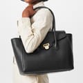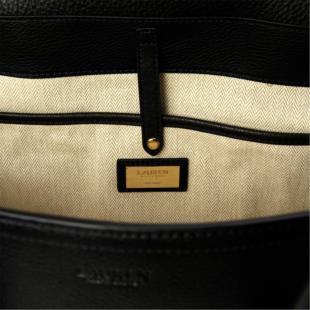 Discover the Lauren by Ralph Lauren satchel, a sophisticated addition to your collection. This bag features a secure buckle closure and a convenient top handle for easy carrying. The elegant design is enhanced with a subtle logo embellishment, adding a touch of brand distinction to this versatile accessory. -