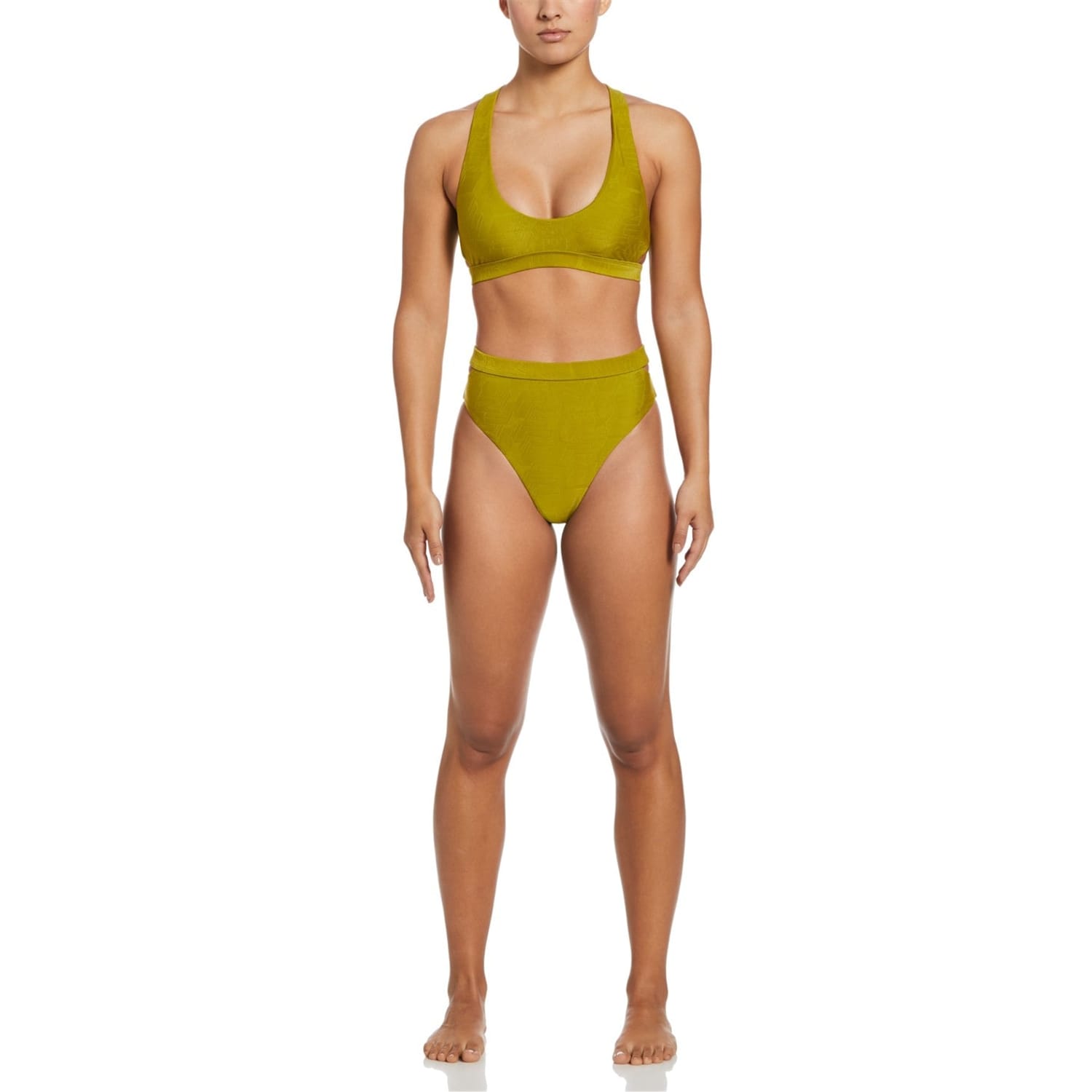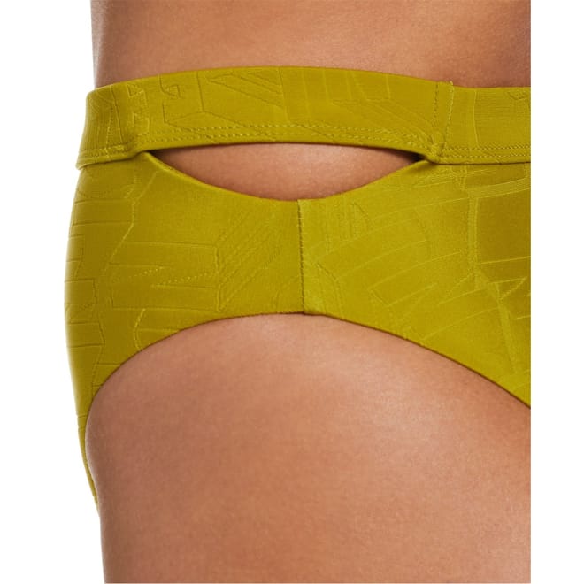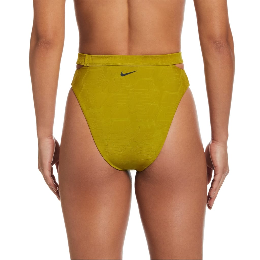 Discover Nike's textured swimwear, featuring a stylish swim bottom design. This piece is adorned with a distinctive cut-out and logo embellishment, adding a unique touch to your swimwear collection. Perfect for those seeking a blend of style and functionality in their swimwear. -