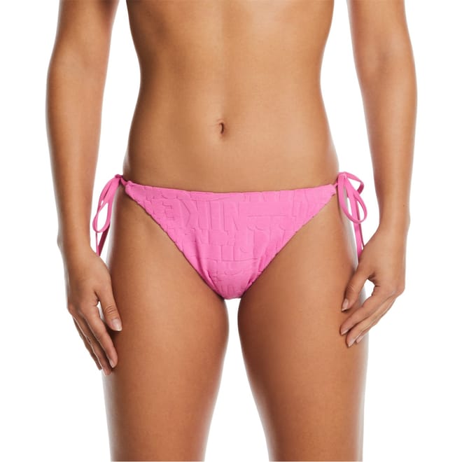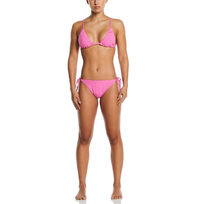 Dive into style with Nike's two-piece swimwear, perfect for swimming enthusiasts. This bikini features a tie closure for a secure fit and showcases an all-over logo pattern with distinctive lettering. The iconic logo embellishment adds a touch of brand recognition, making it a standout choice for your swimwear collection. -