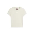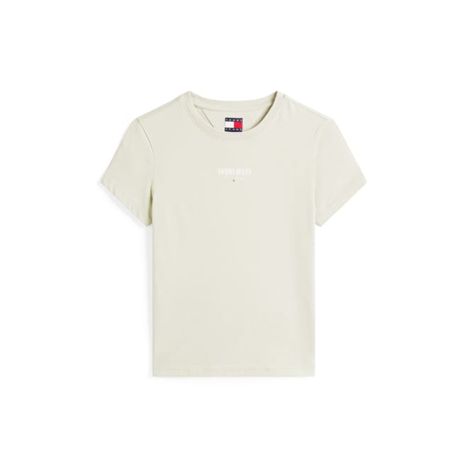 This Tommy Jeans top features a regular fit with a solid pattern and short sleeves. The crew neck design is complemented by a distinctive logo embellishment and lettering graphic, adding a touch of brand identity. -