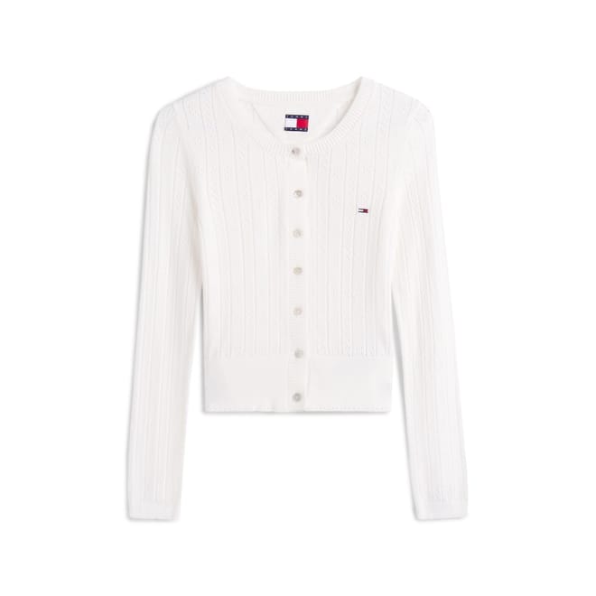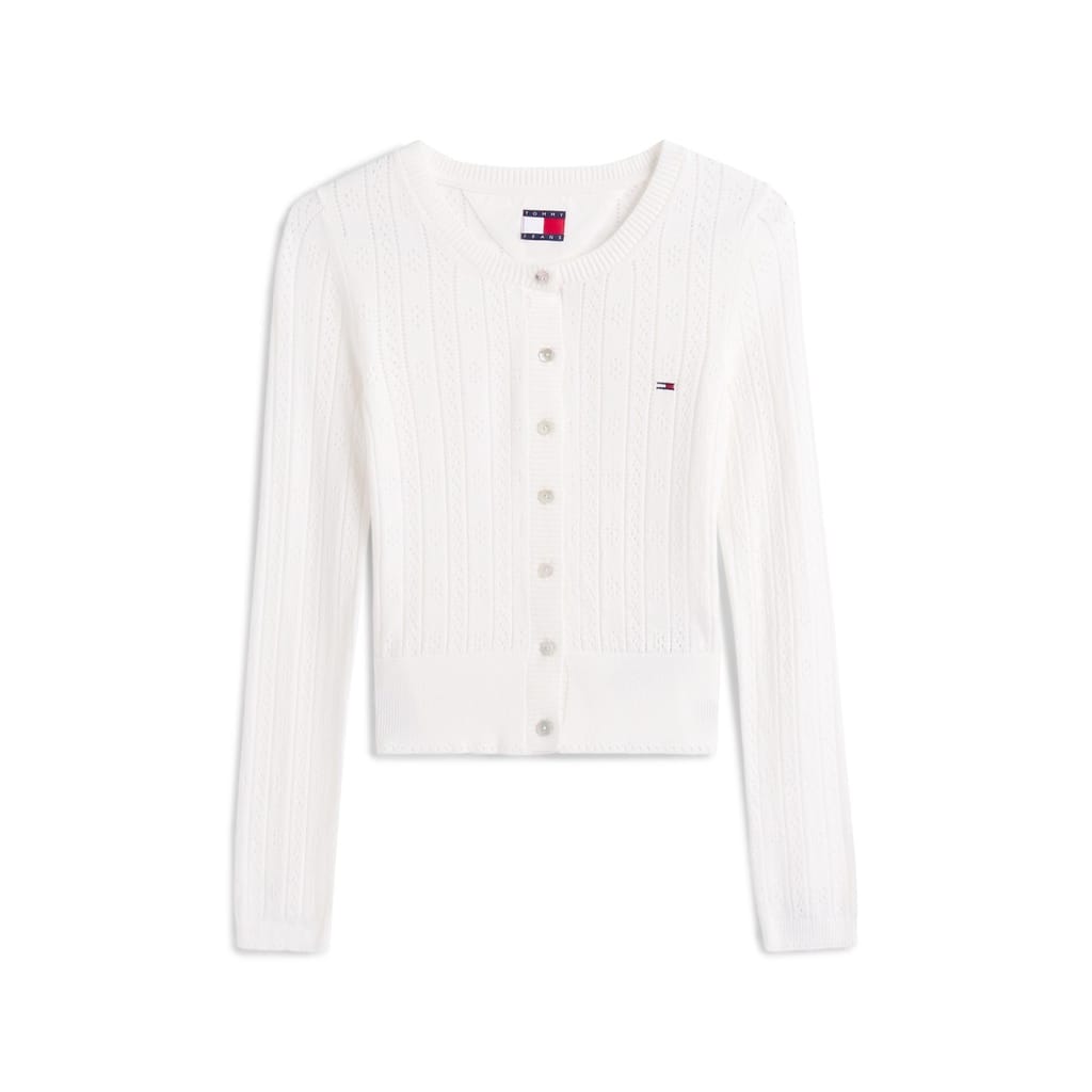 Tommy Jeans Poinelle Cardigan delivers texture through delicate pointelle knit detailing. The classic cut offers great styling potential with a traditional button-front design, making it an enduring fashion staple.
