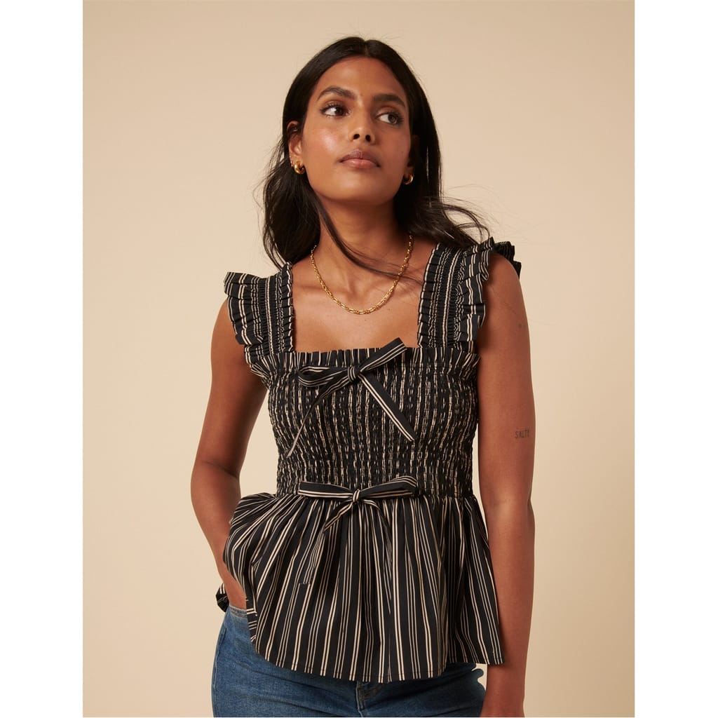 Nobodys Child's Christina Peplum Top features a structured shape with a flattering peplum that creates a smart profile.